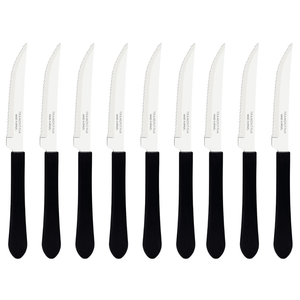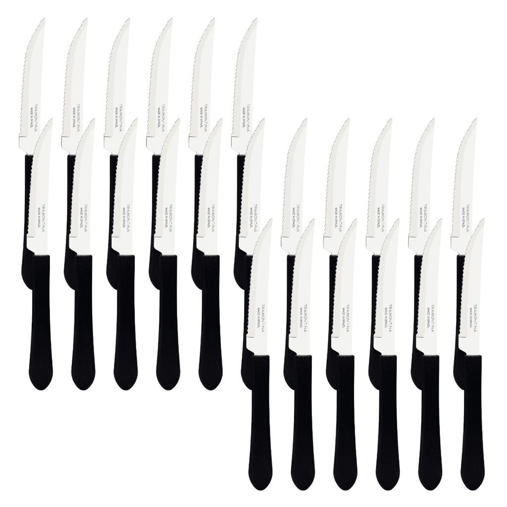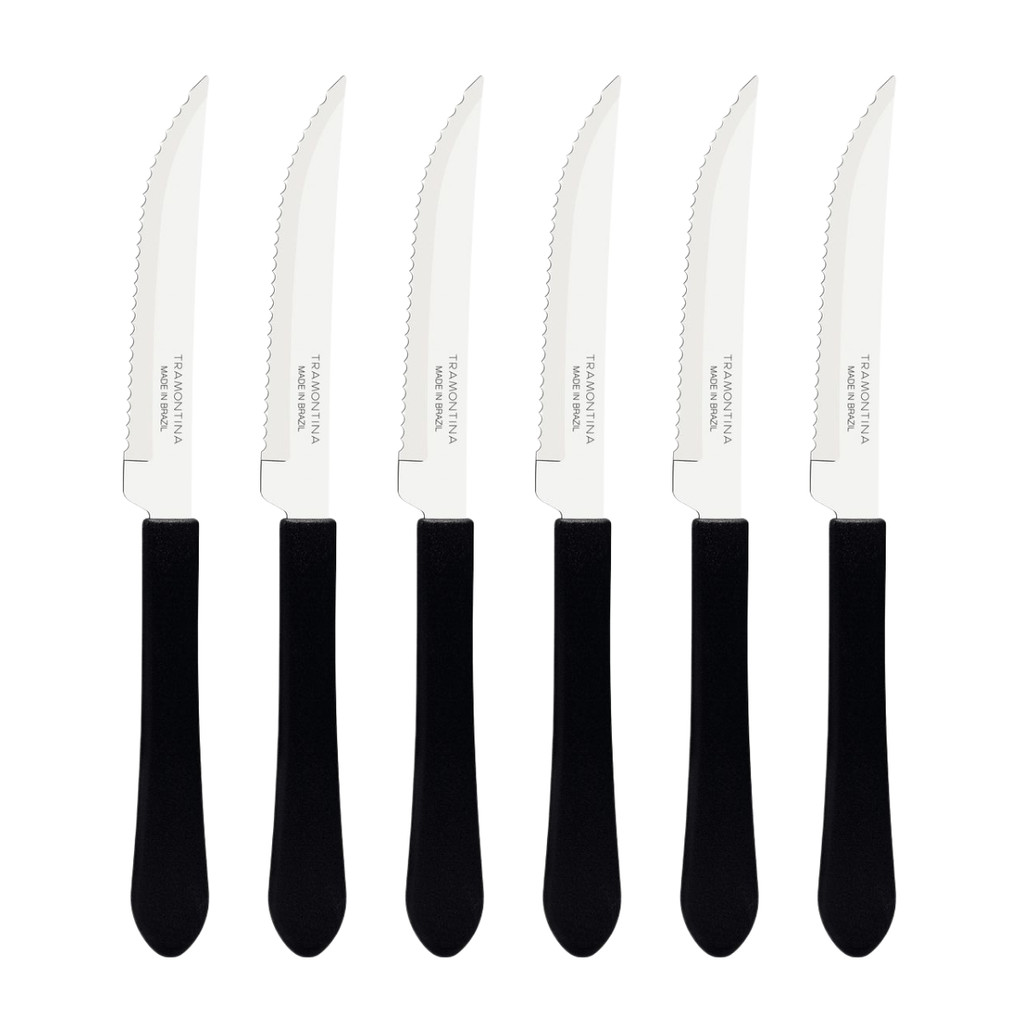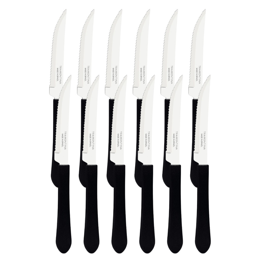 Kit 6, 9, 12 ou 24 Facas Tramontina Leme Para Churrasco Cabo Preto Serra
