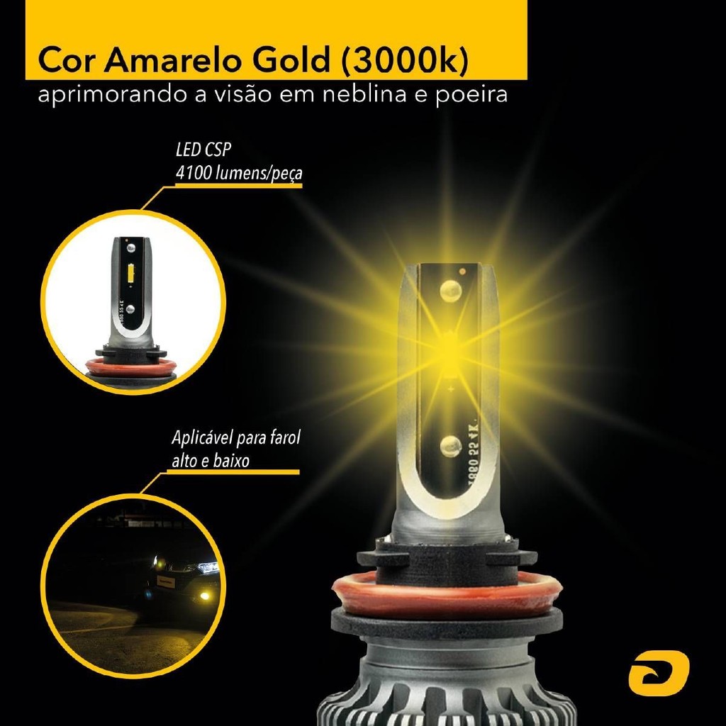 Kit Lâmpada Led Sky H8 H11 40w 8200lm 3000k Amarela 12v Tarponn