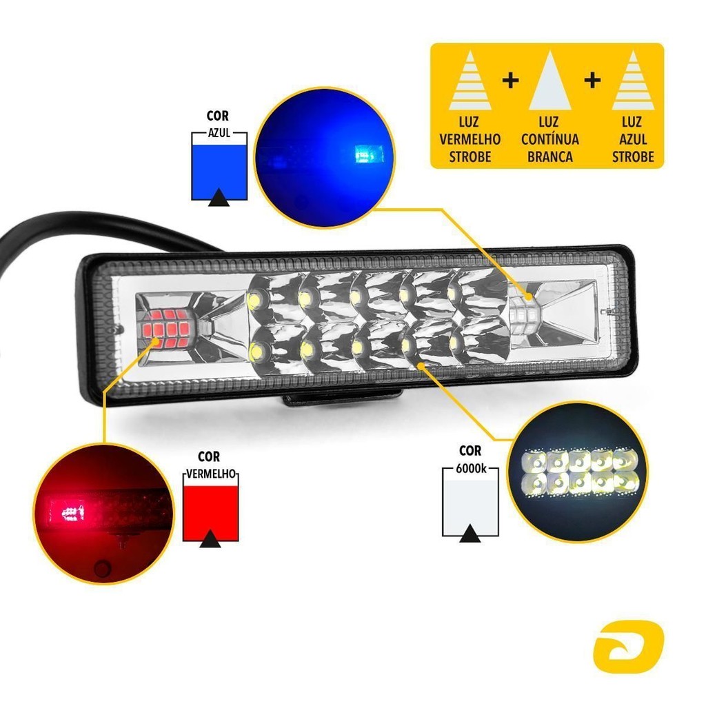 Farol Auxiliar Retangular 6 Leds Strobe 12v-24v 6k Tarponn