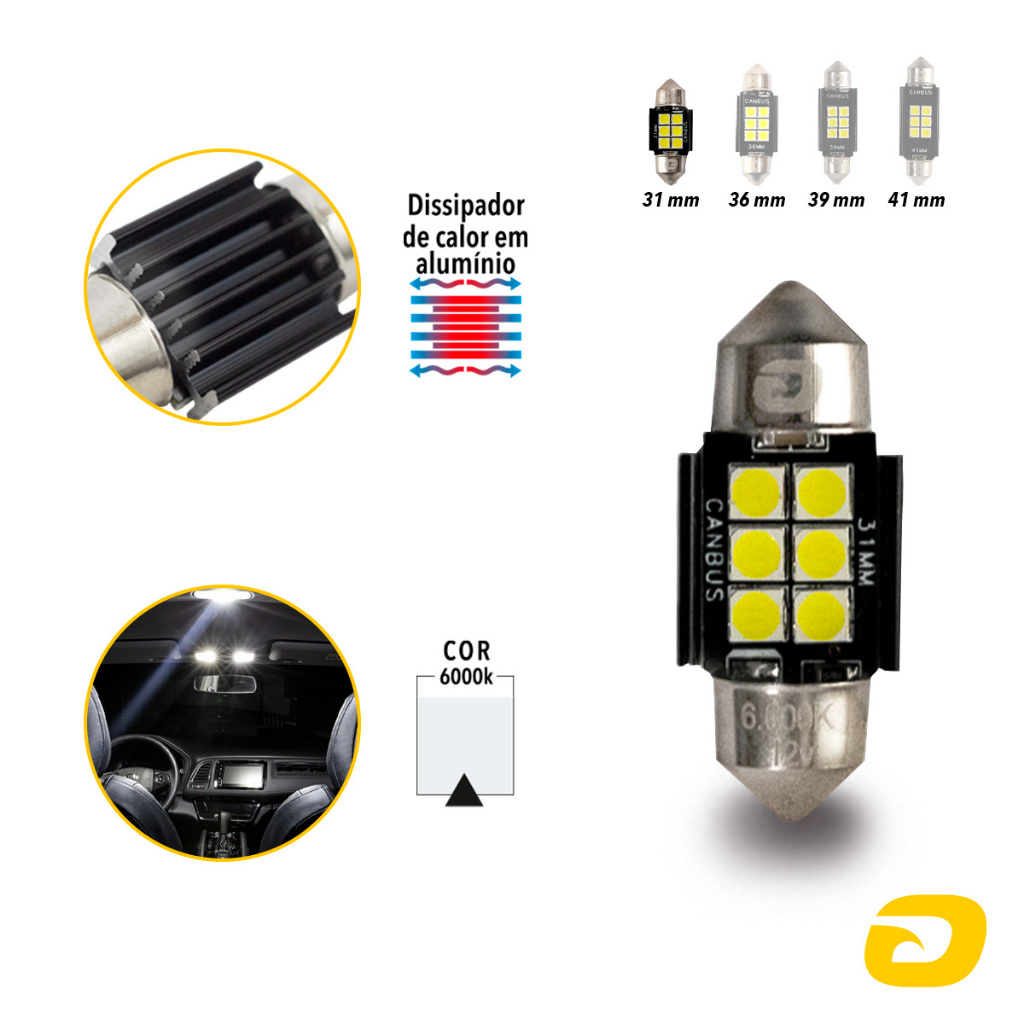 Par Lâmpada Led Torpedo Canbus Premium 31mm 12v 6000k