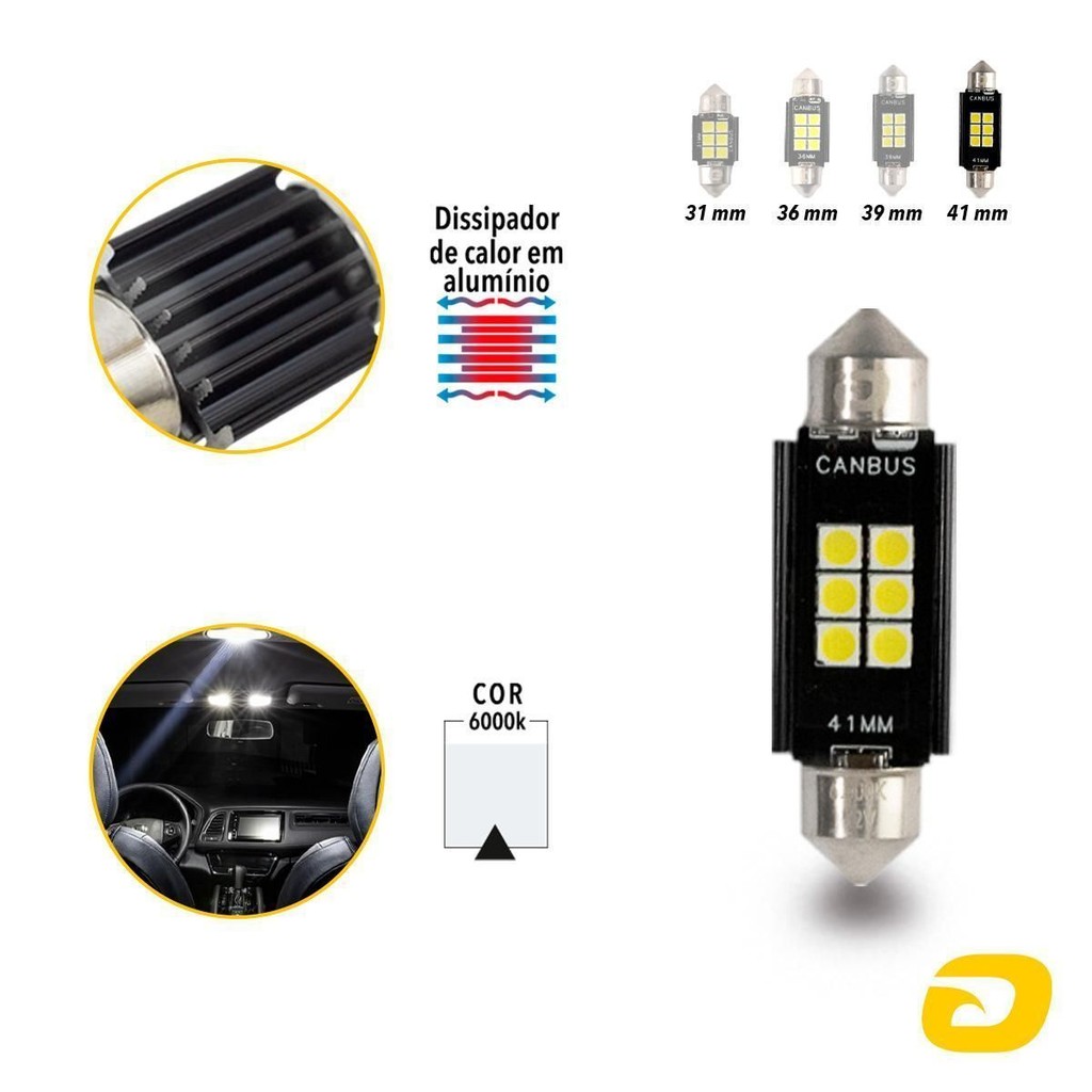 Par Lâmpada Led Torpedo Canbus Premium 41mm 12v 6000k Tarponn
