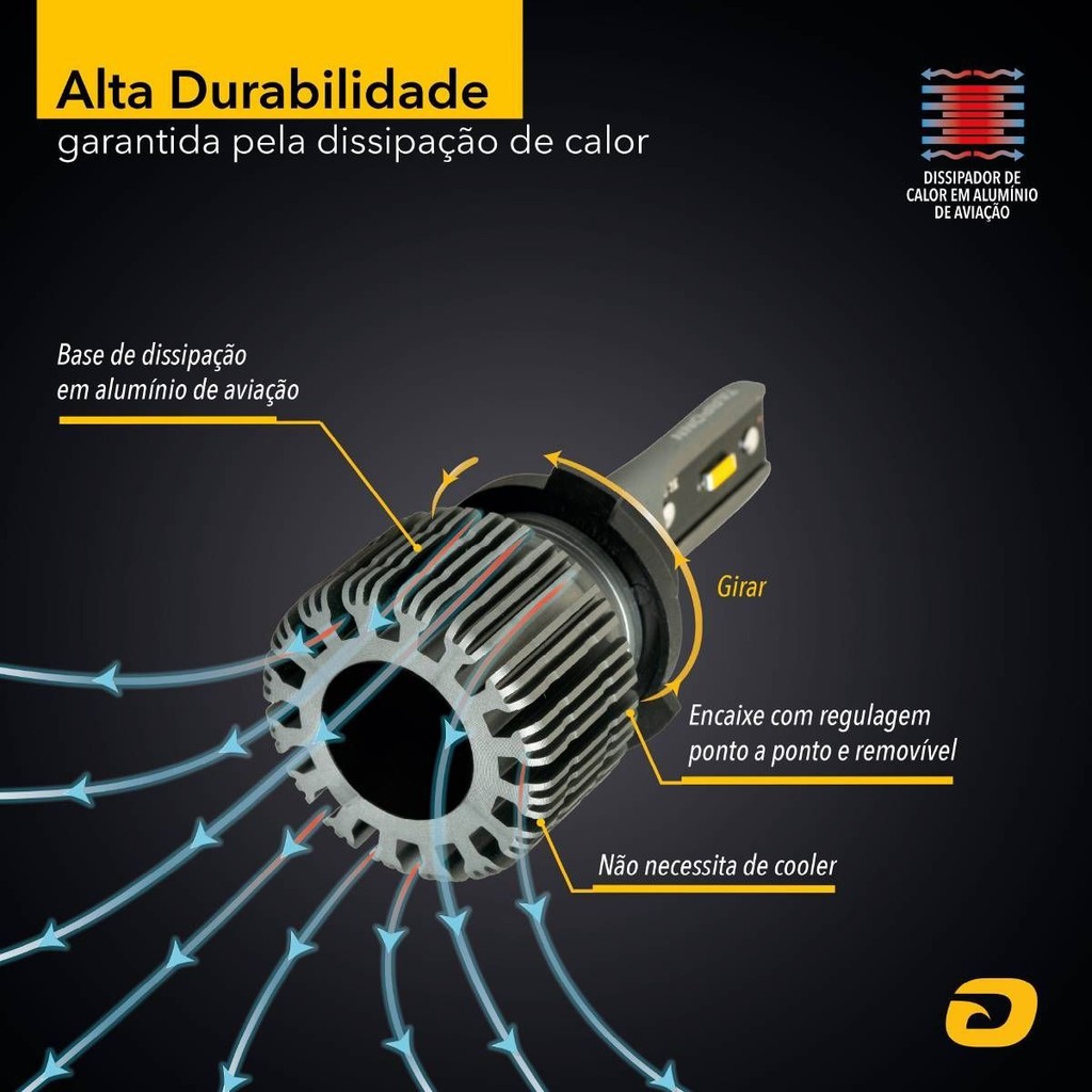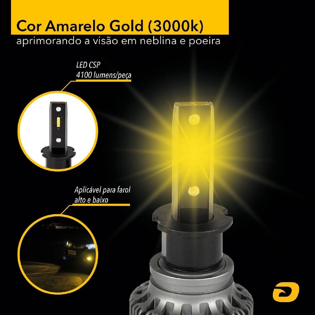 Kit Lâmpada Led Sky H3 40w 8200lm 3000k Amarela 12v Tarponn