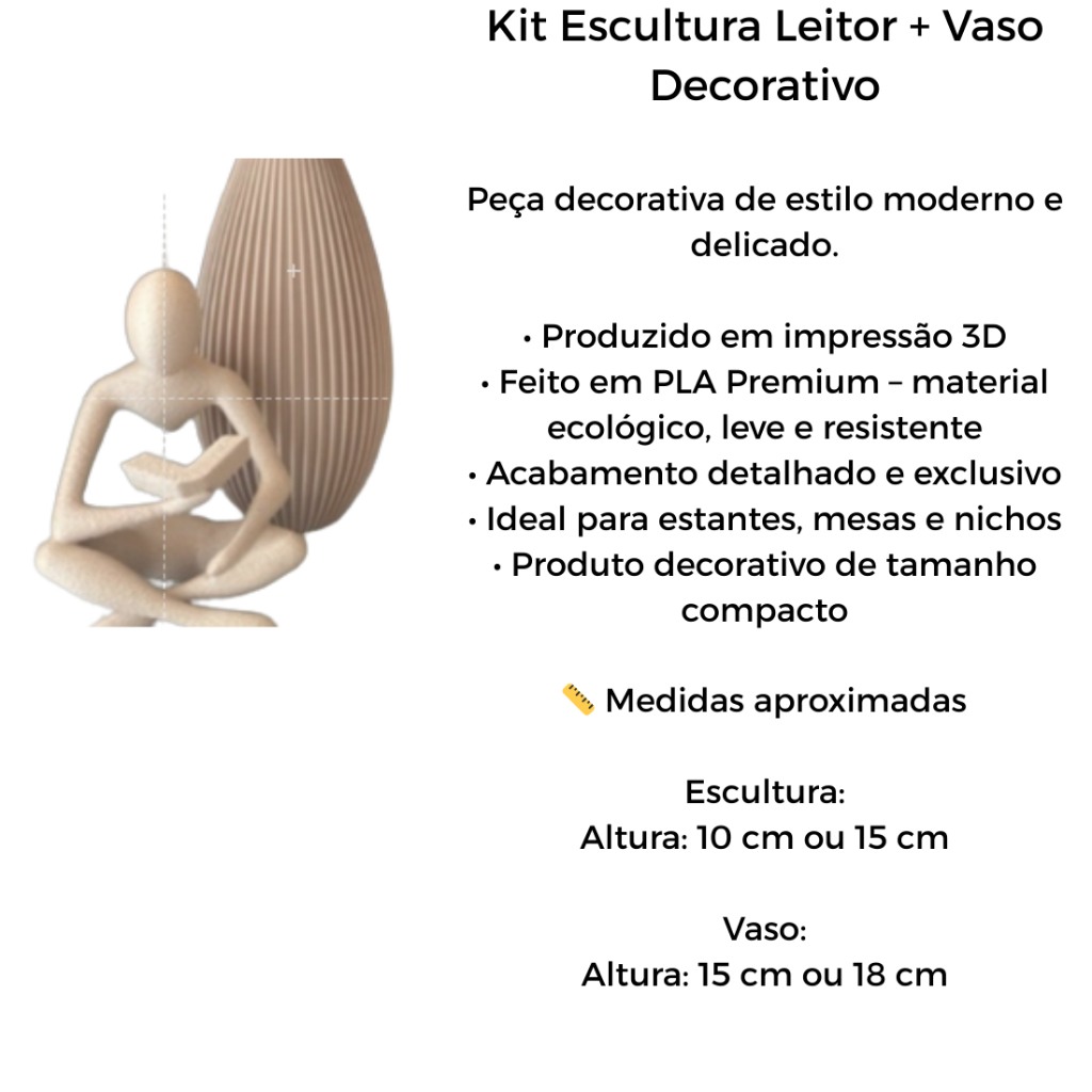 Kit Escultura Leitor + Vaso Decorativo – Ideal para Plantas Artificiais e Arranjos Decorativos
