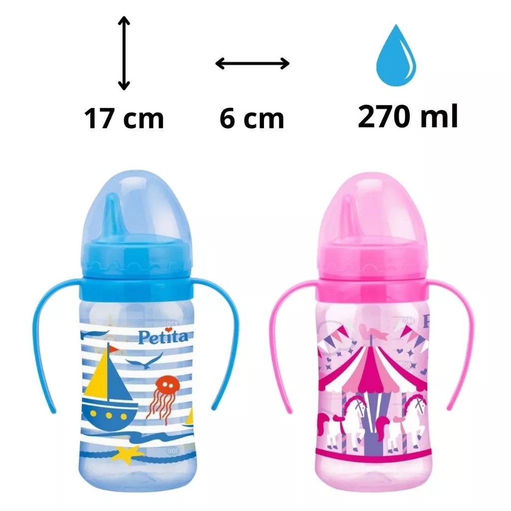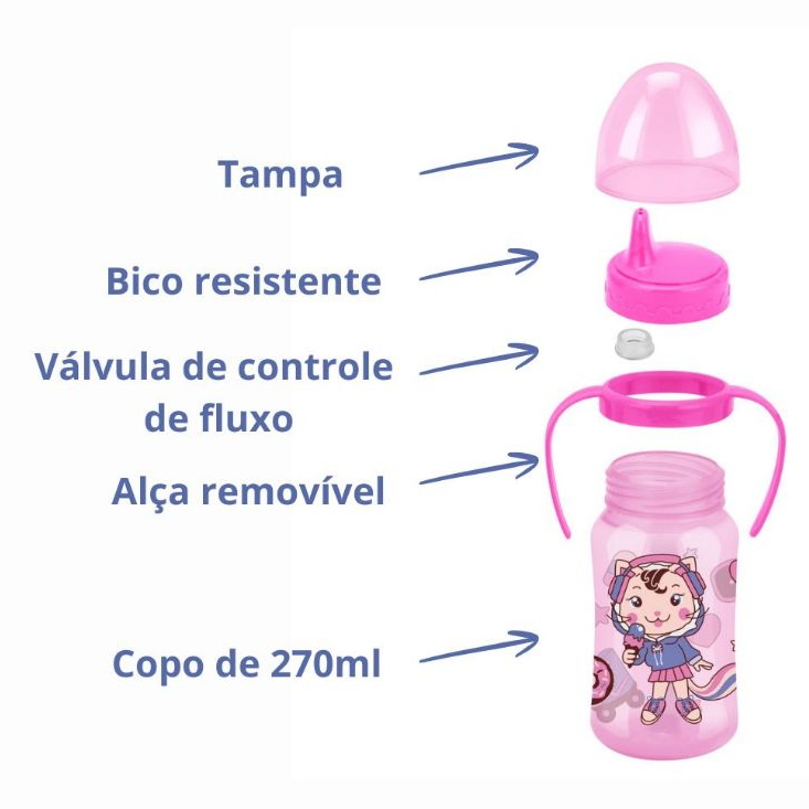 Copo Infantil Petita 270 ml com Alça | Bico Rígido Antivazamento | Válvula Redutora de Fluxo | Livre de BPA