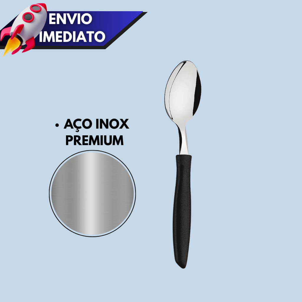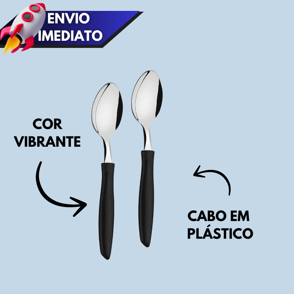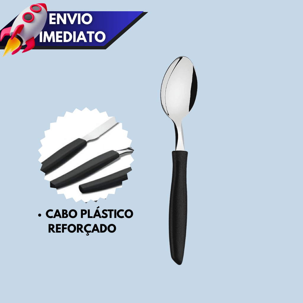Kit 12/15/24 Talheres – Colher de Chá ou Sobremesa com Cabo Plástico Preto