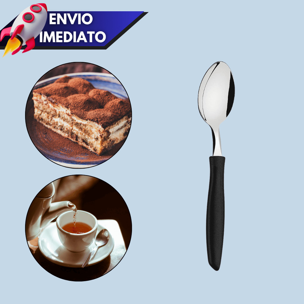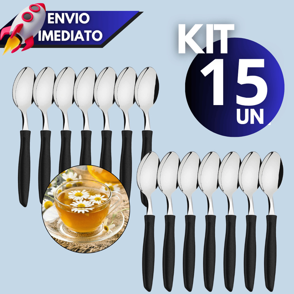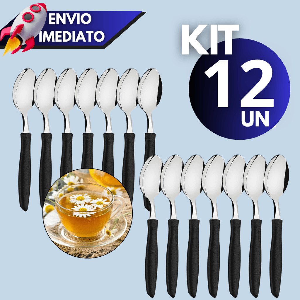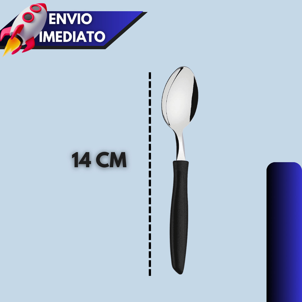 Kit 12/15/24 Talheres – Colher de Chá ou Sobremesa com Cabo Plástico Preto
