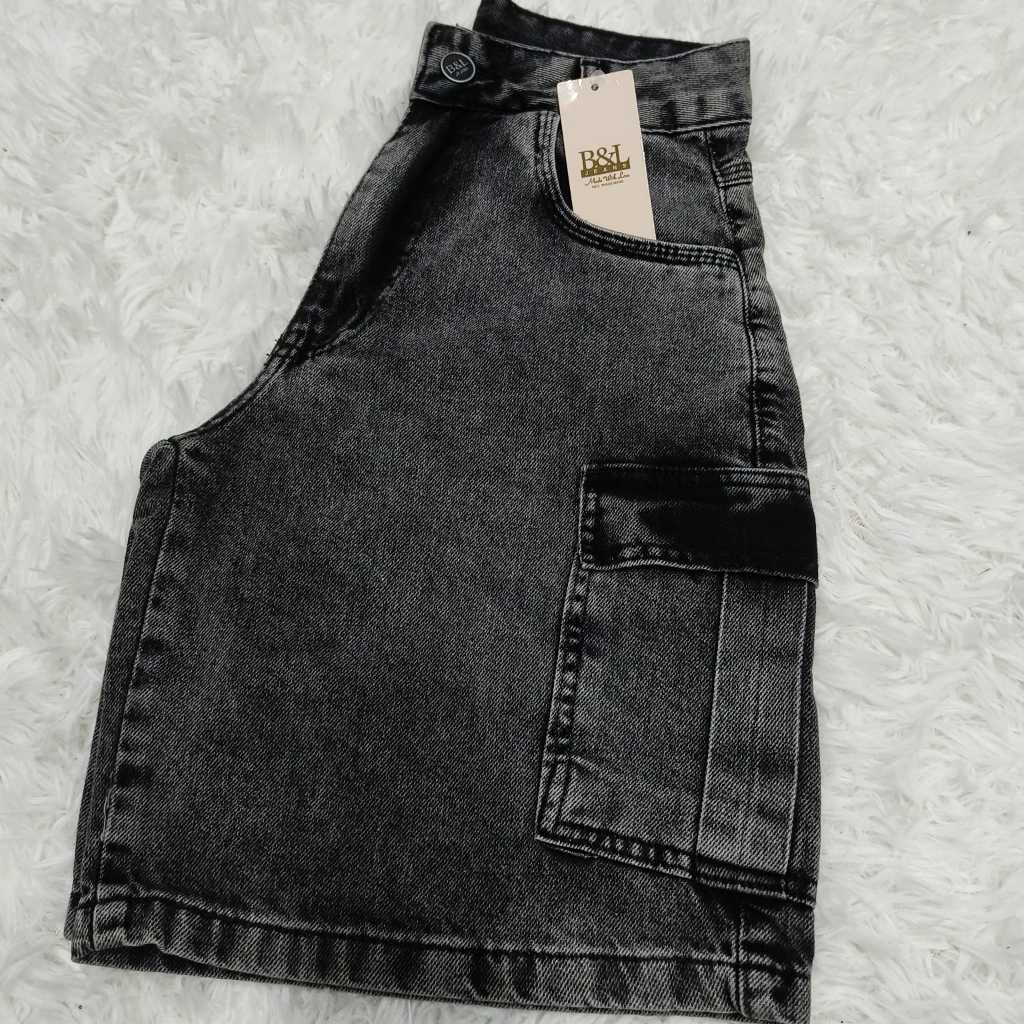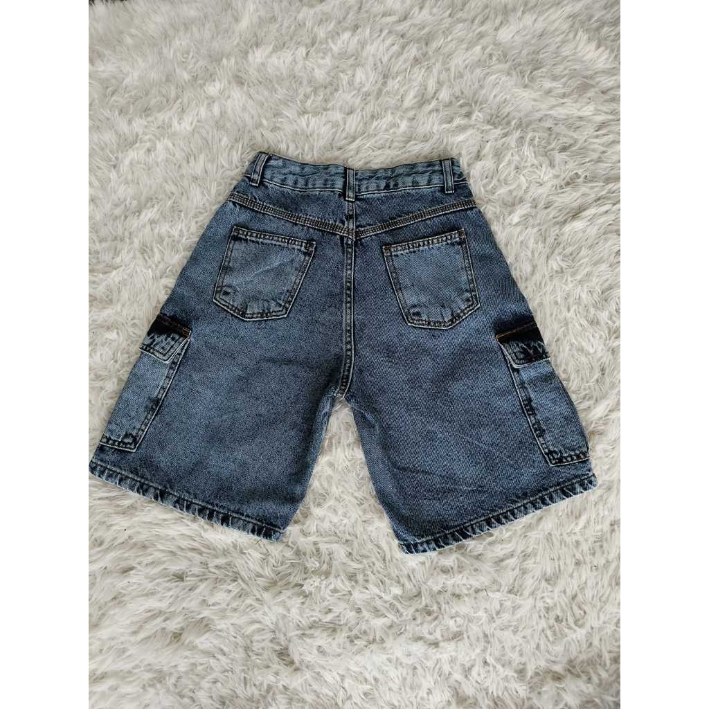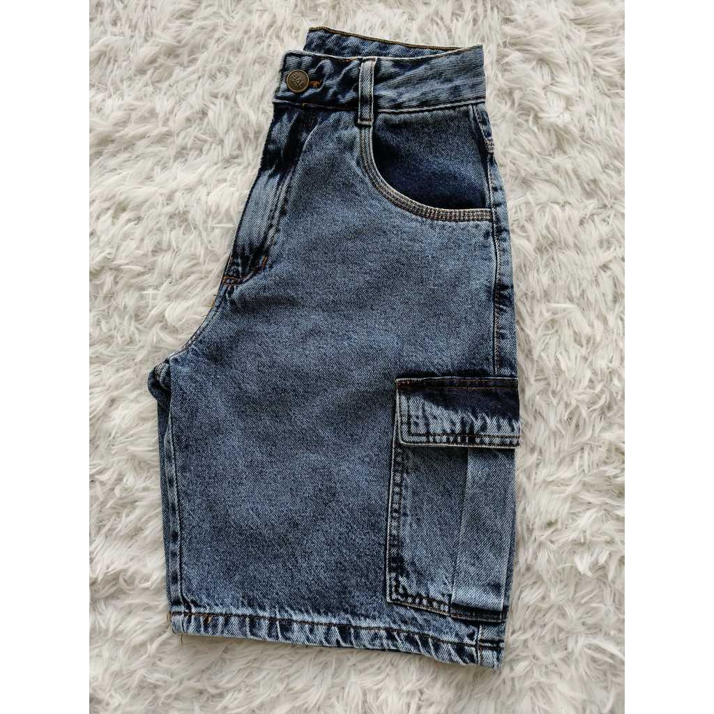 Bermuda jeans feminina cargo de wide leg de cintura alta
