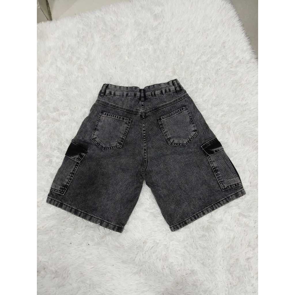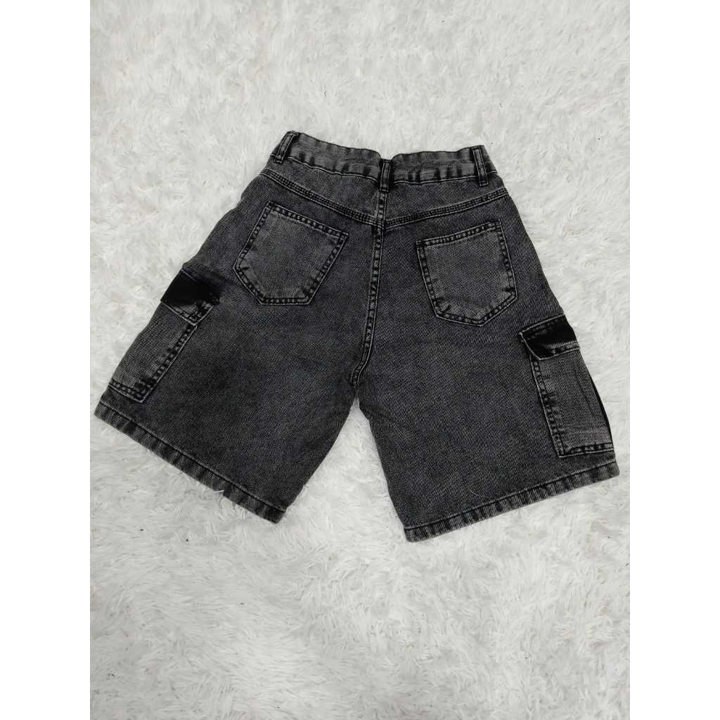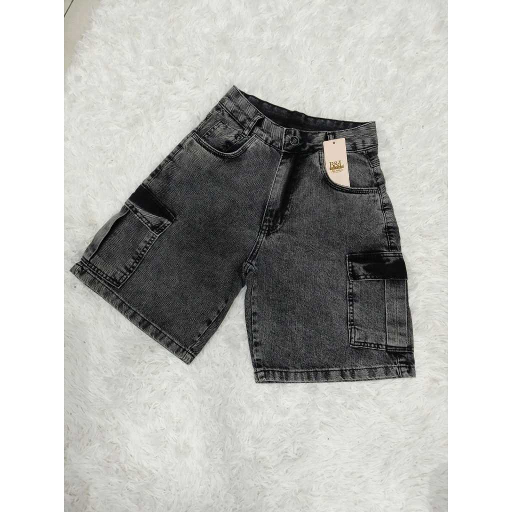 Bermuda jeans feminina cargo de wide leg de cintura alta