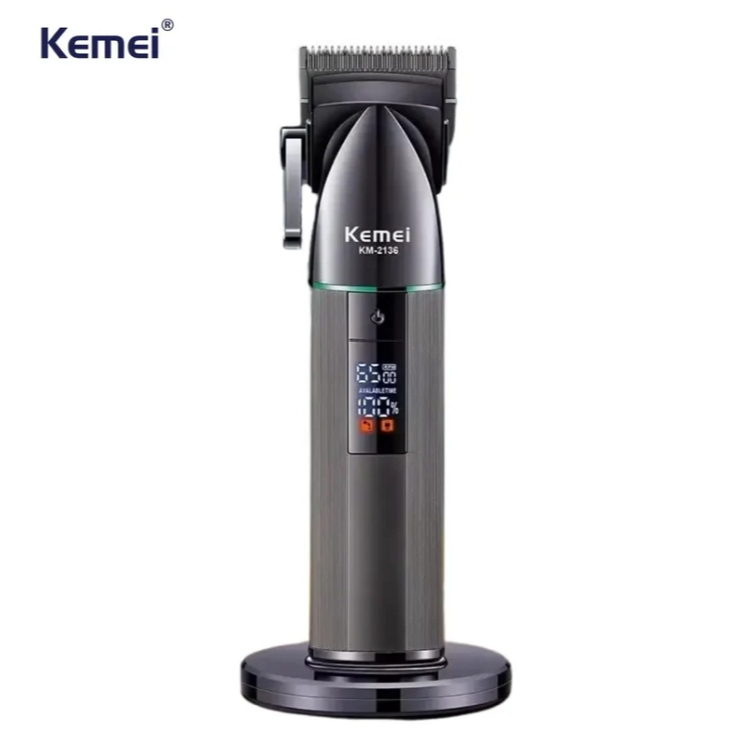 Maquina de Cortar Cabelo Recarregável com Base Profissional Bivolt Kemei KM-2136