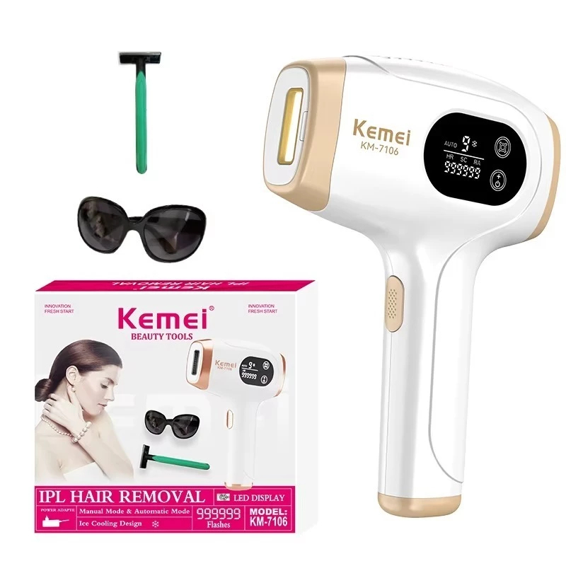 Depilador Feminino Laser Gelado Elétrico Profissional Kemei KM-7106