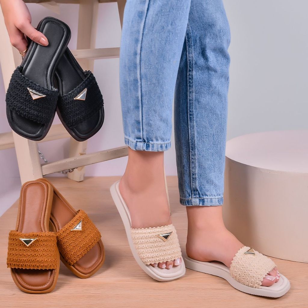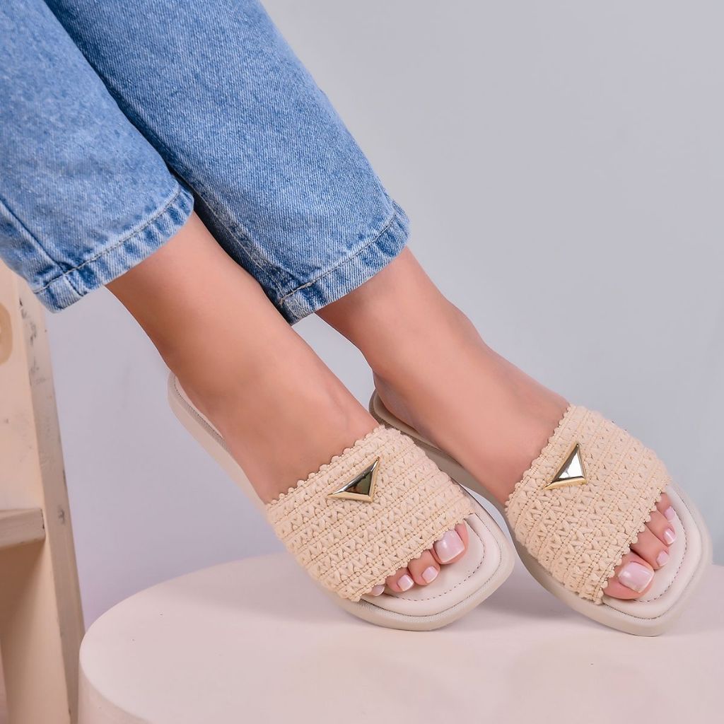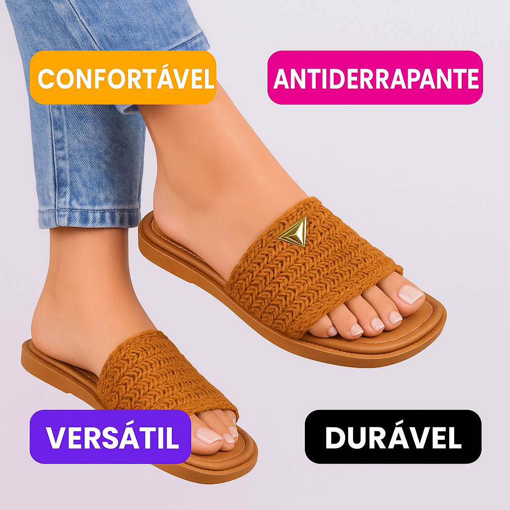 Sandália Rasteira Feminina Confortável Trançada Casual