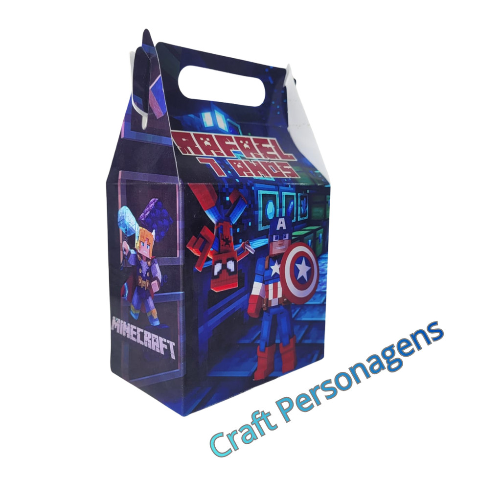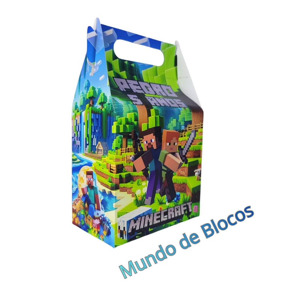 Caixinha Maletinha Minecraft kit Personalizada Nome e Idade Decoração de Festa Lembrancinha de Luxo Brilho