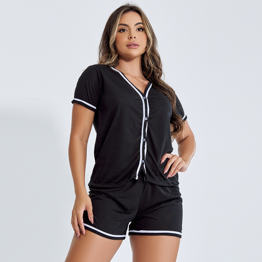Pijama Feminino Baby Doll Short Verão Confortável Blogueirinha Alcinha Luxo Com Botões