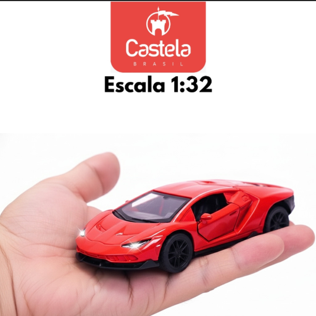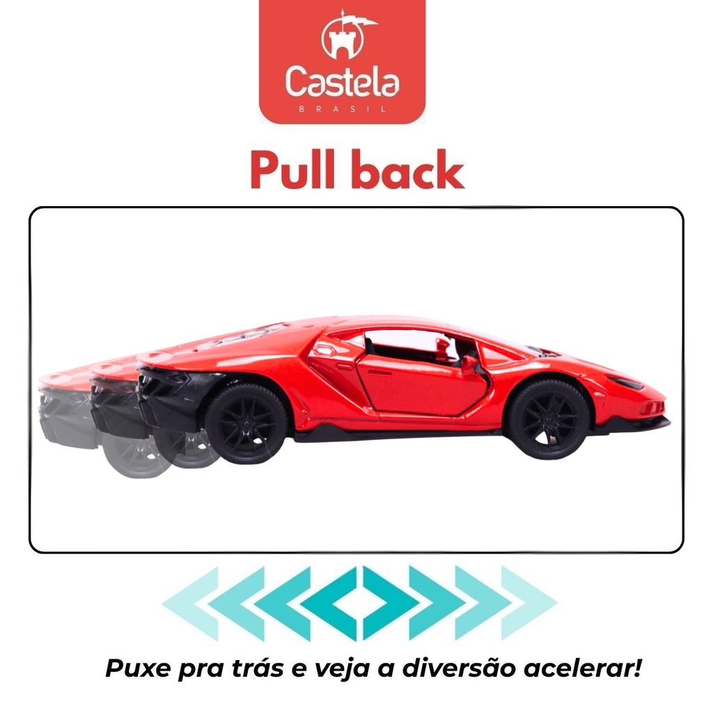 Carrinho Miniatura Vermelho Pull Back Metal 1:32 C/ Som e Luz - Castela Brasil