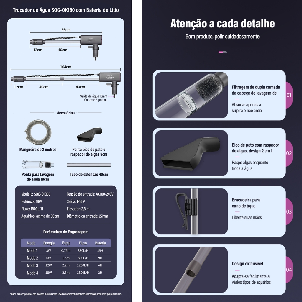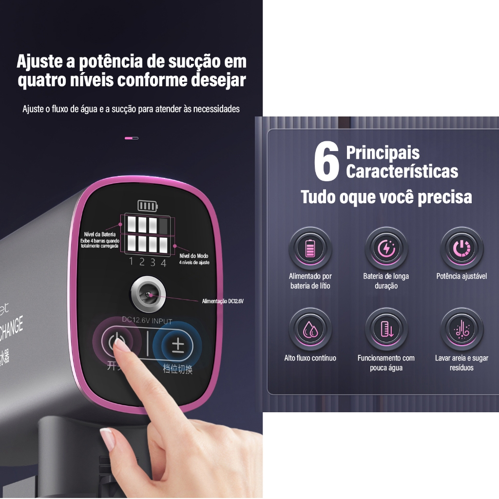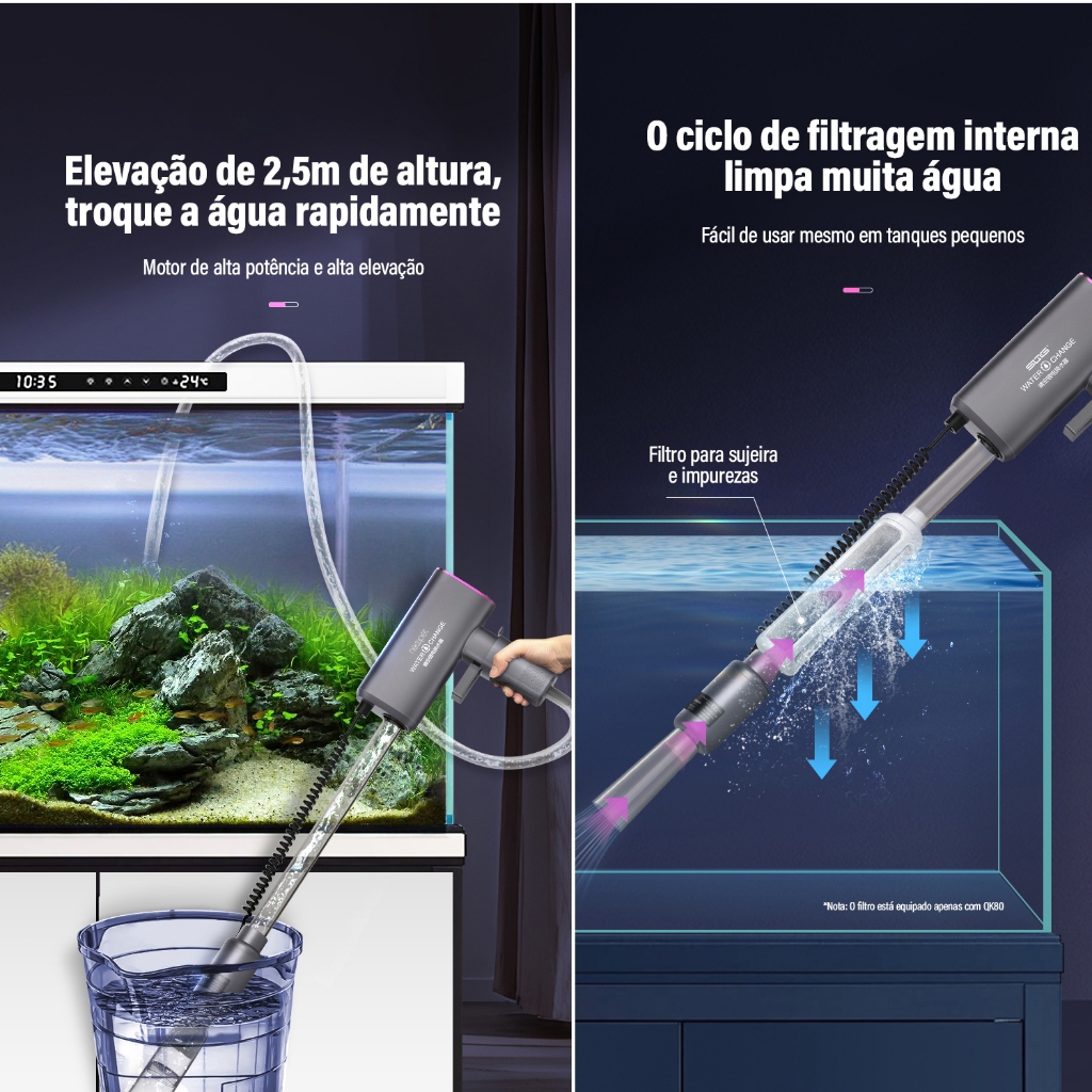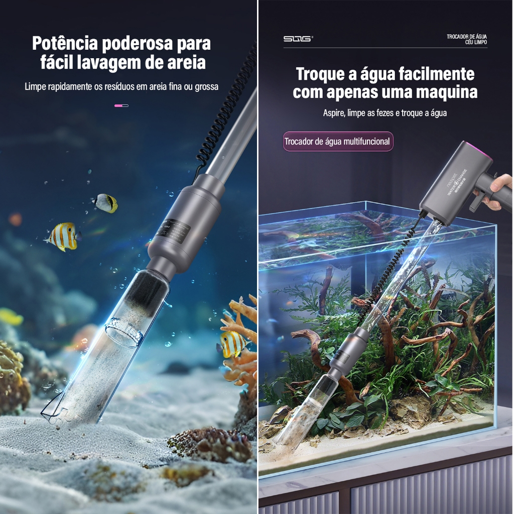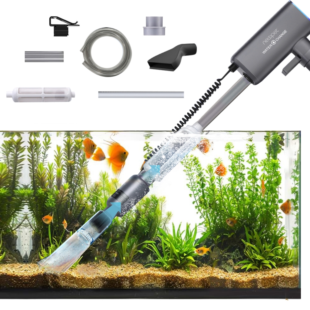 Newpet Aspirador e Trocador de Água Automático para Aquário, Limpador de Fundo com Bateria de Lítio DC