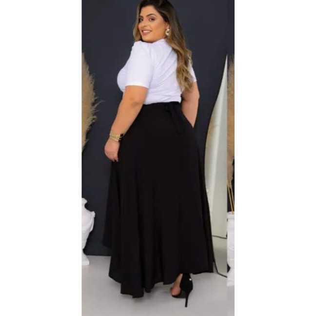 SAIA ENVELOPE PLUS SIZE COM AMARRAÇÃO MODA BLOGUEIRA ELEGANTE PRETA