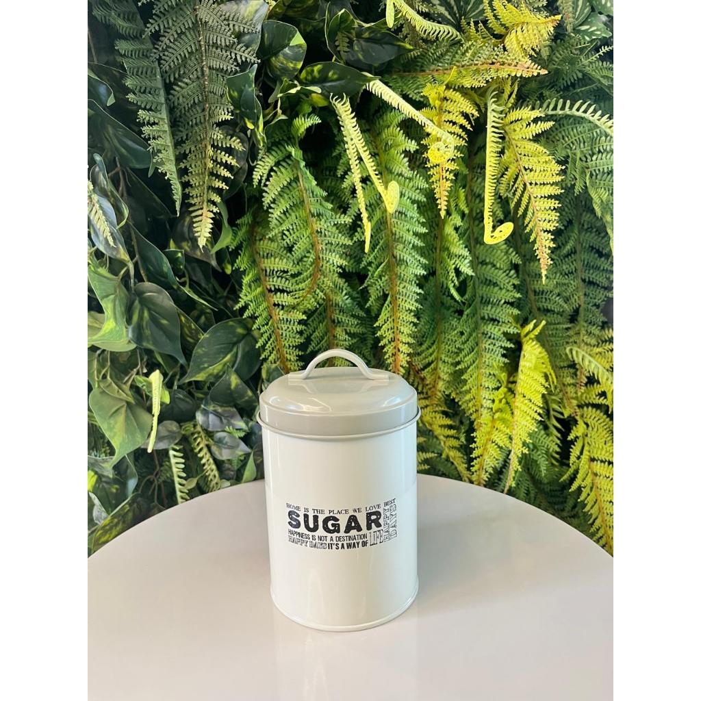 Porta Açúcar Bege com Tampa e Estampa Decorativa – Estilo Retrô Vintage