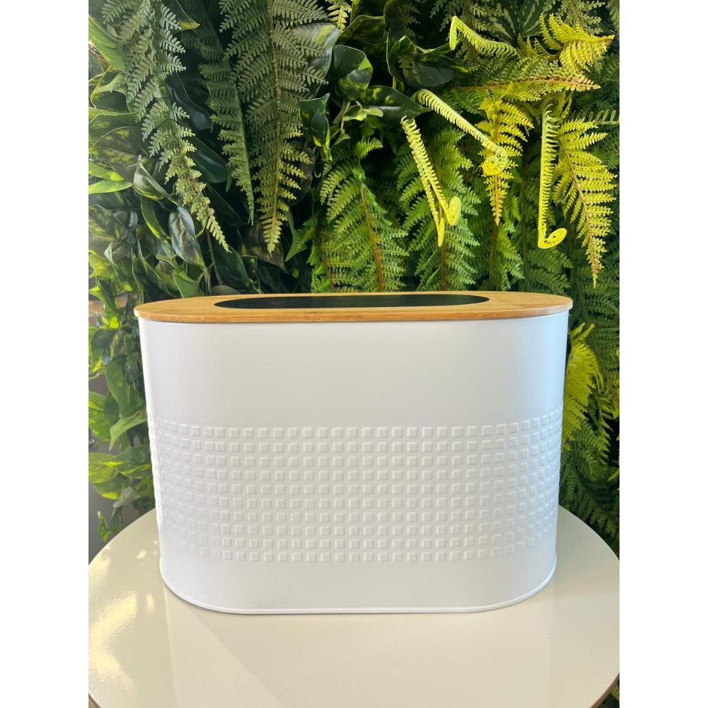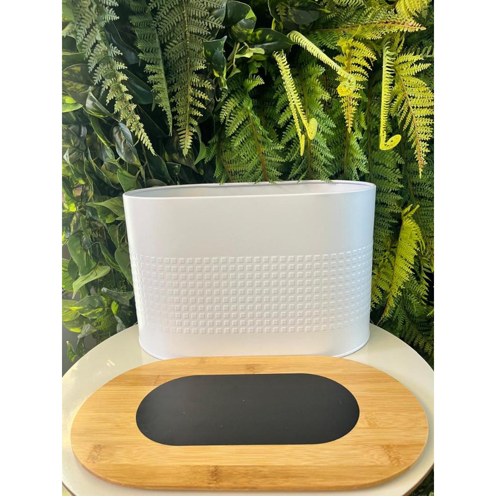 Porta Pães Grande Branco Premium com tampa de Bambu Origem Espanhola, 34 C X 24 A X 22 L