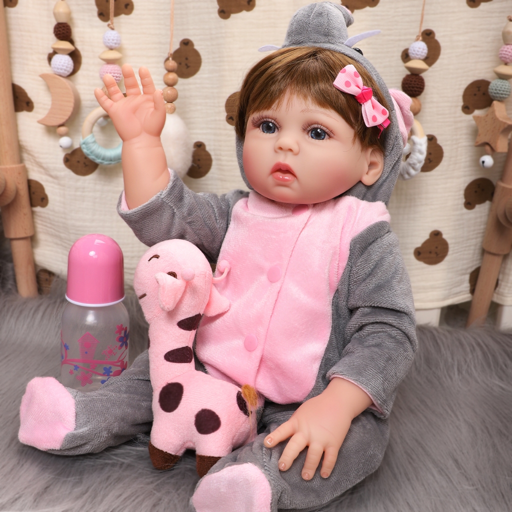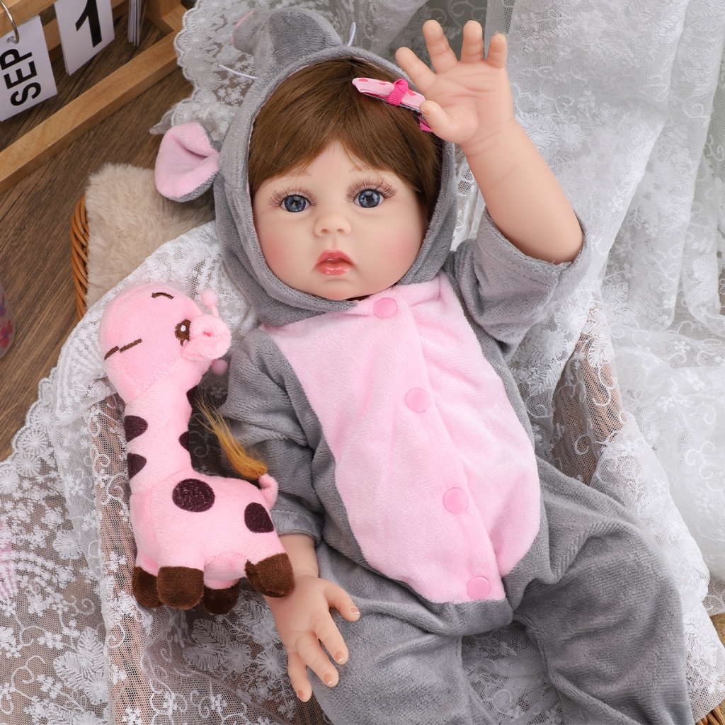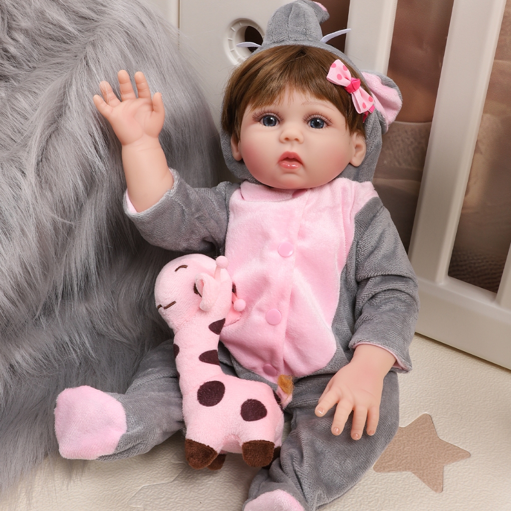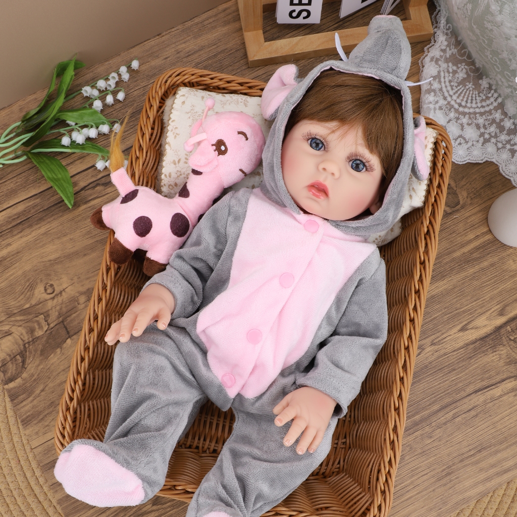 Bebê Reborn Boneca Silicone 48cm Menina Roupas De Elefante