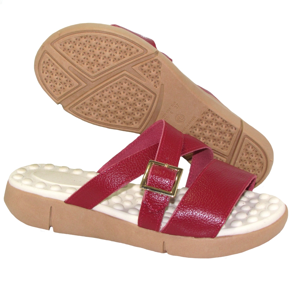 Chinelo Feminino Ortopédico Tamanco Casual Em Couro Sola Massageadora Esporão Confortável