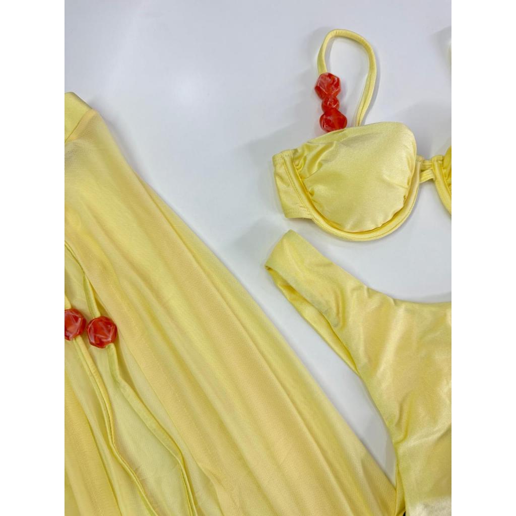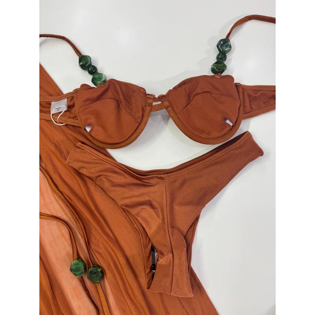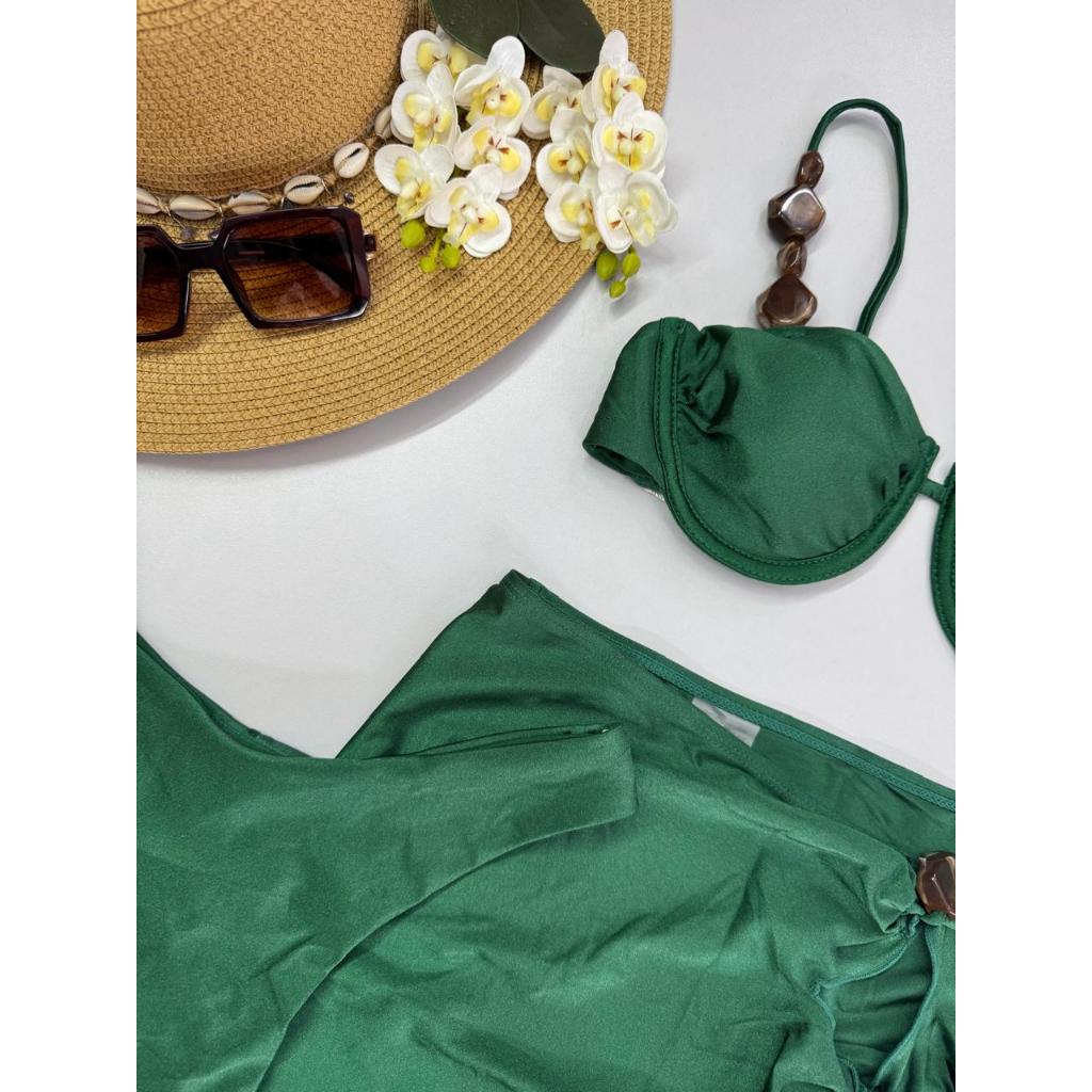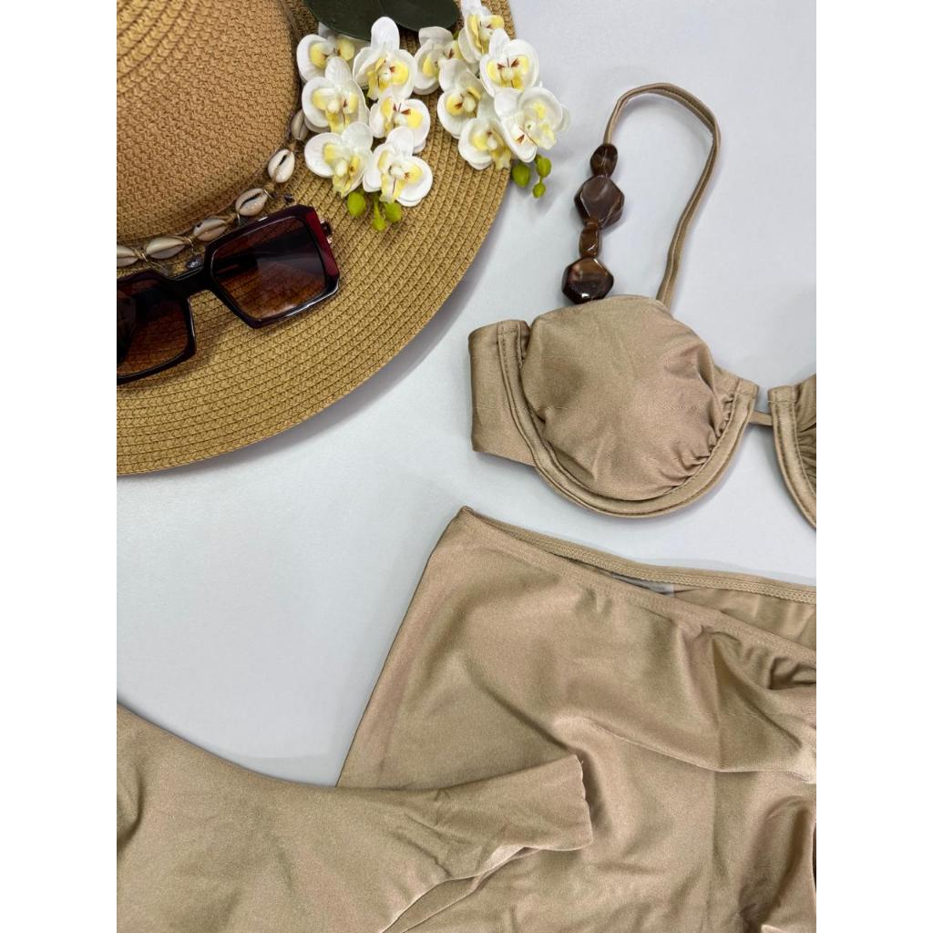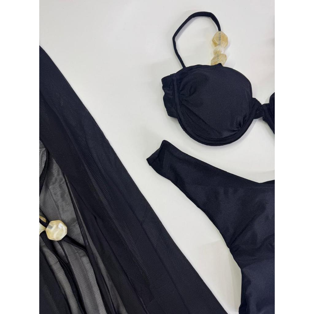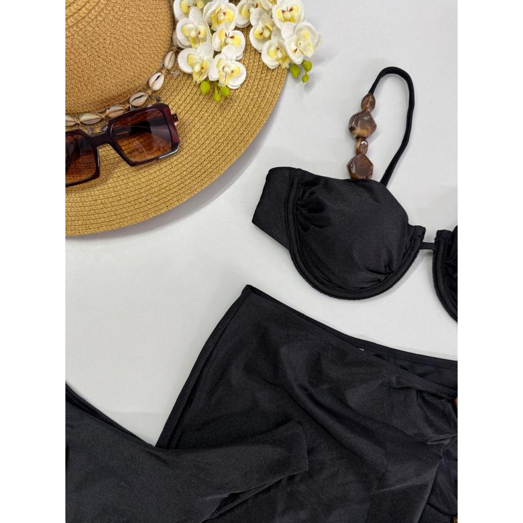 Biquíni 3 Peças com Saída de Praia – Bojo Removível, Alças Reguláveis, Fio Duplo e Detalhes Modernos – P M G GG