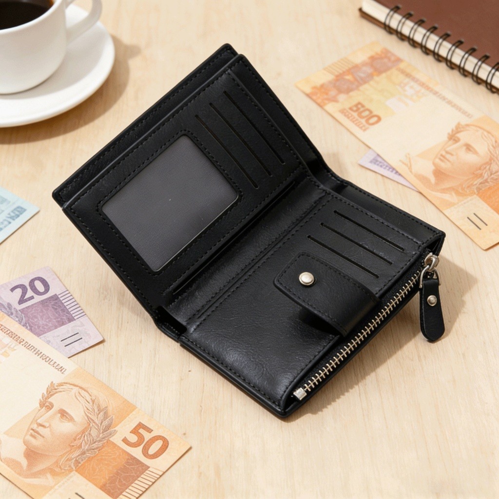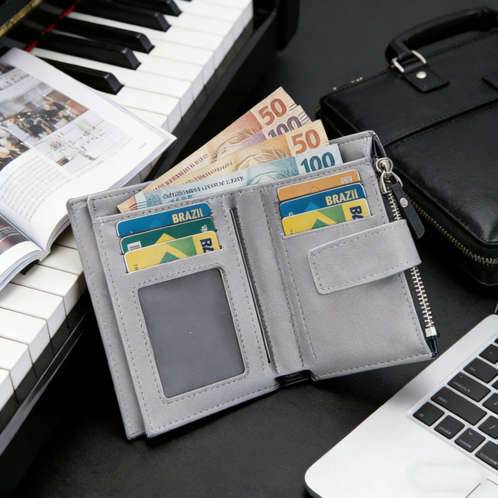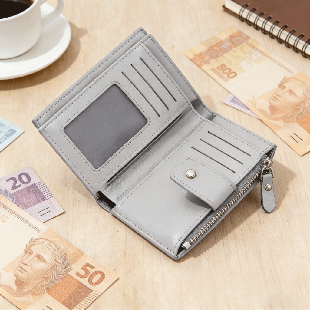 CarteiraCompacta Unissex de Couro PU Durável, Funcional e Ideal para Uso Diário com Todos os Estilos