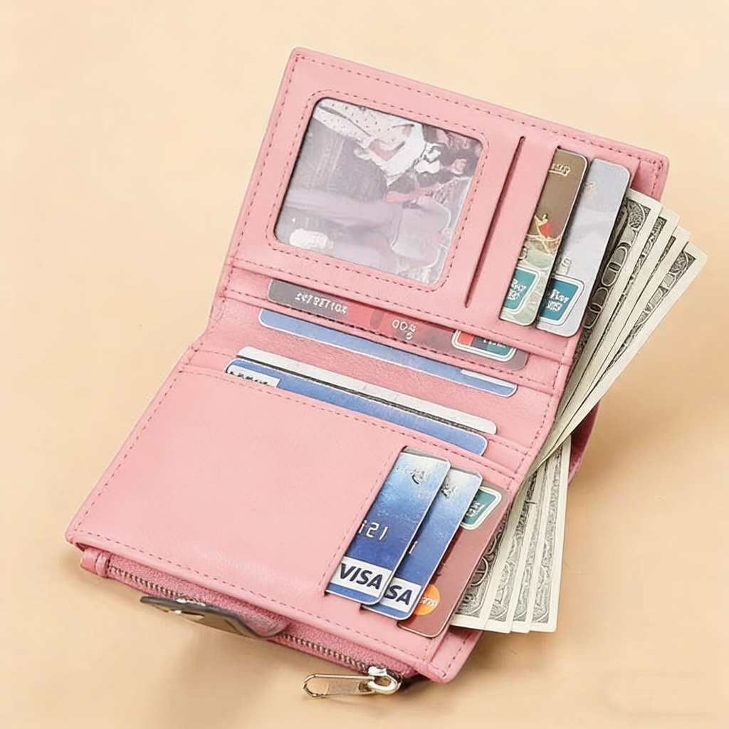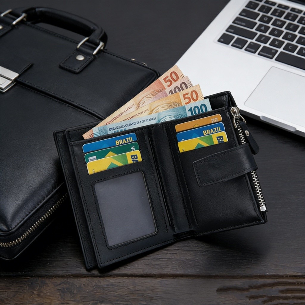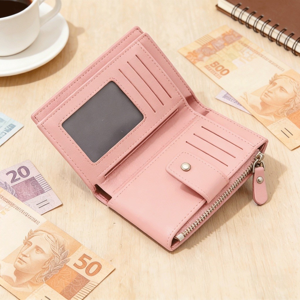 CarteiraCompacta Unissex de Couro PU Durável, Funcional e Ideal para Uso Diário com Todos os Estilos