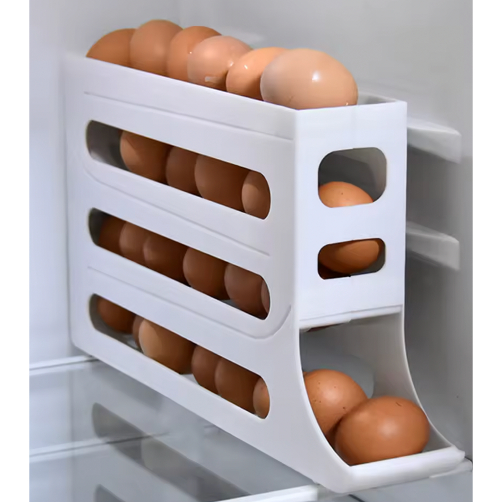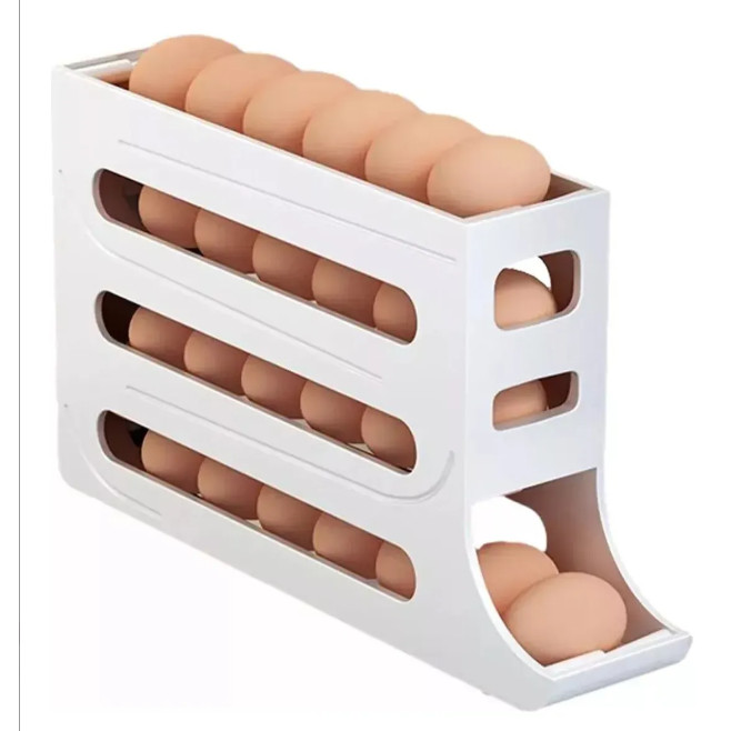 Suporte Porta Ovos Rolante Dispenser Rolante 4 Andares Branco