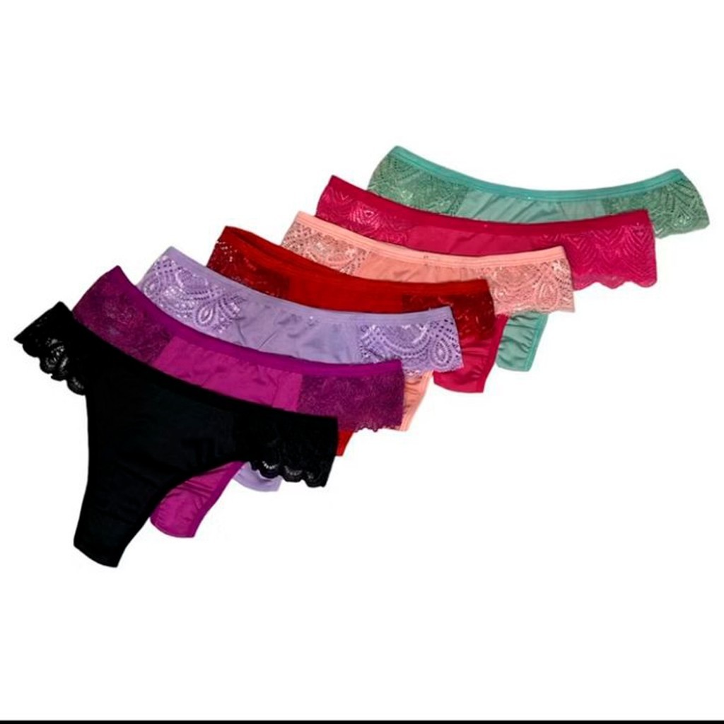 KIT com 7 CALCINHAS DE RENDA LATERAL CONFORTO LINGERIE MODA ÍNTIMA