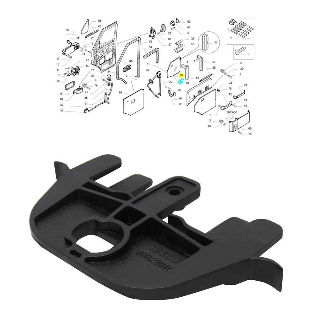 SUPORTE INFERIOR VIDRO PORTA DIANTEIRA DIREITA OU ESQUERDA DAILY 2.8 8V 1997 A 2007 93928016