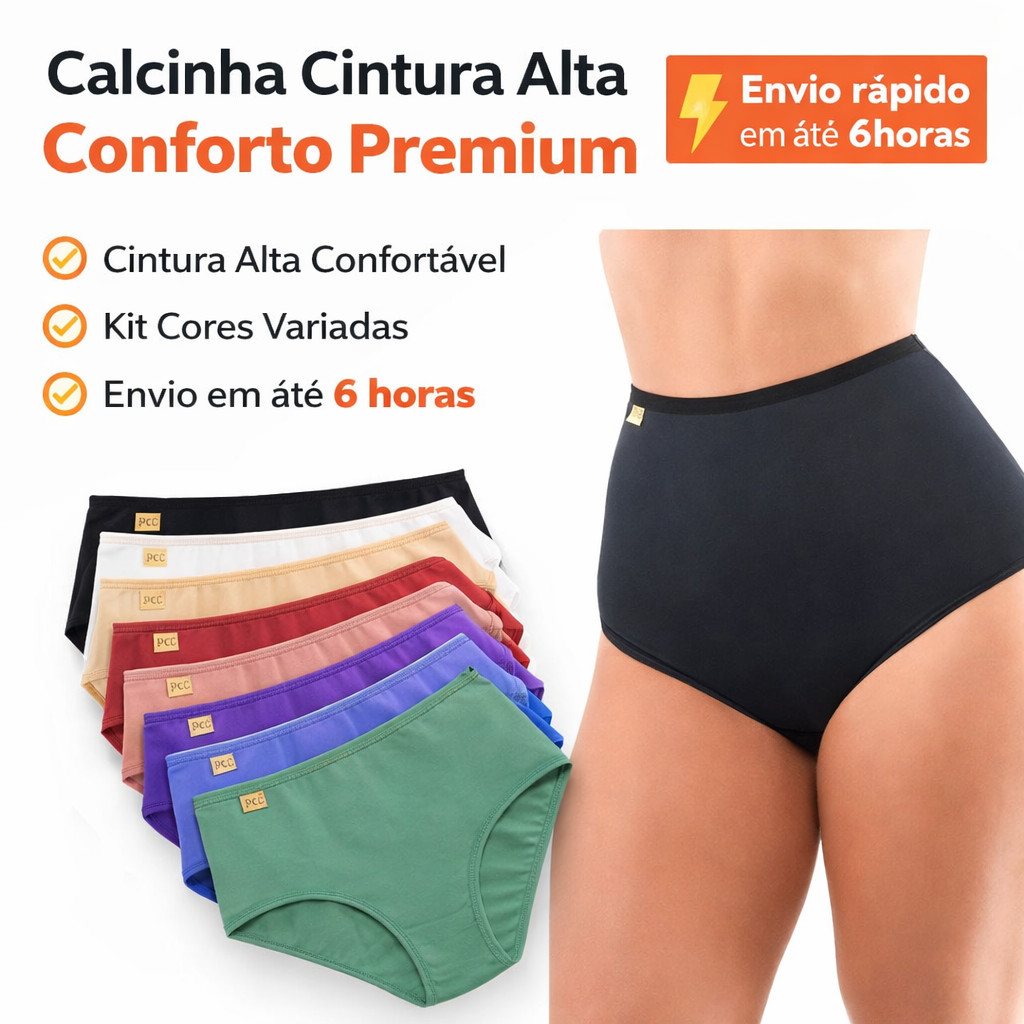 Kit Calcinha Cintura Alta Hot Pants Gestante e Pós-Parto Segura Barriga