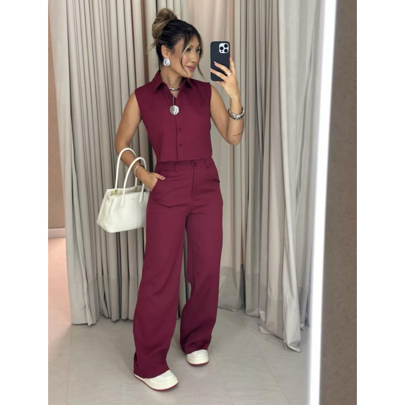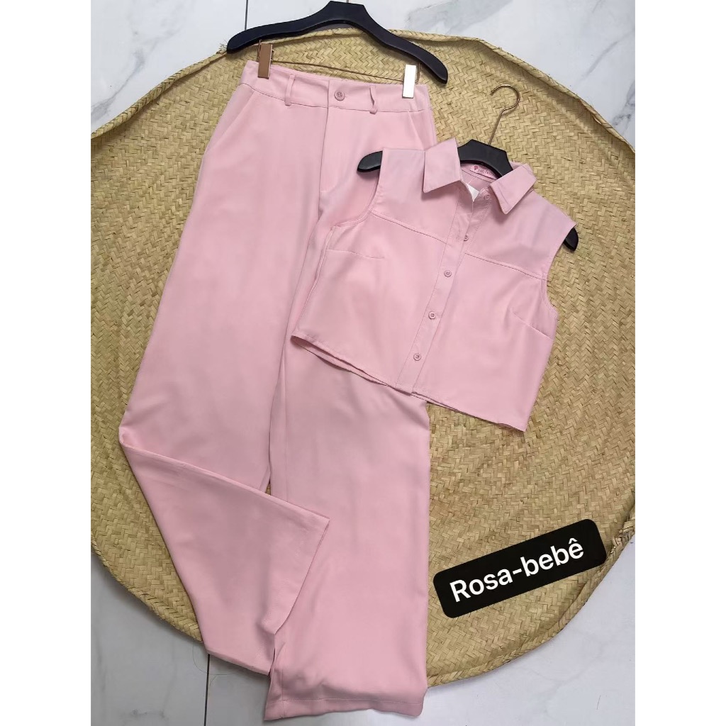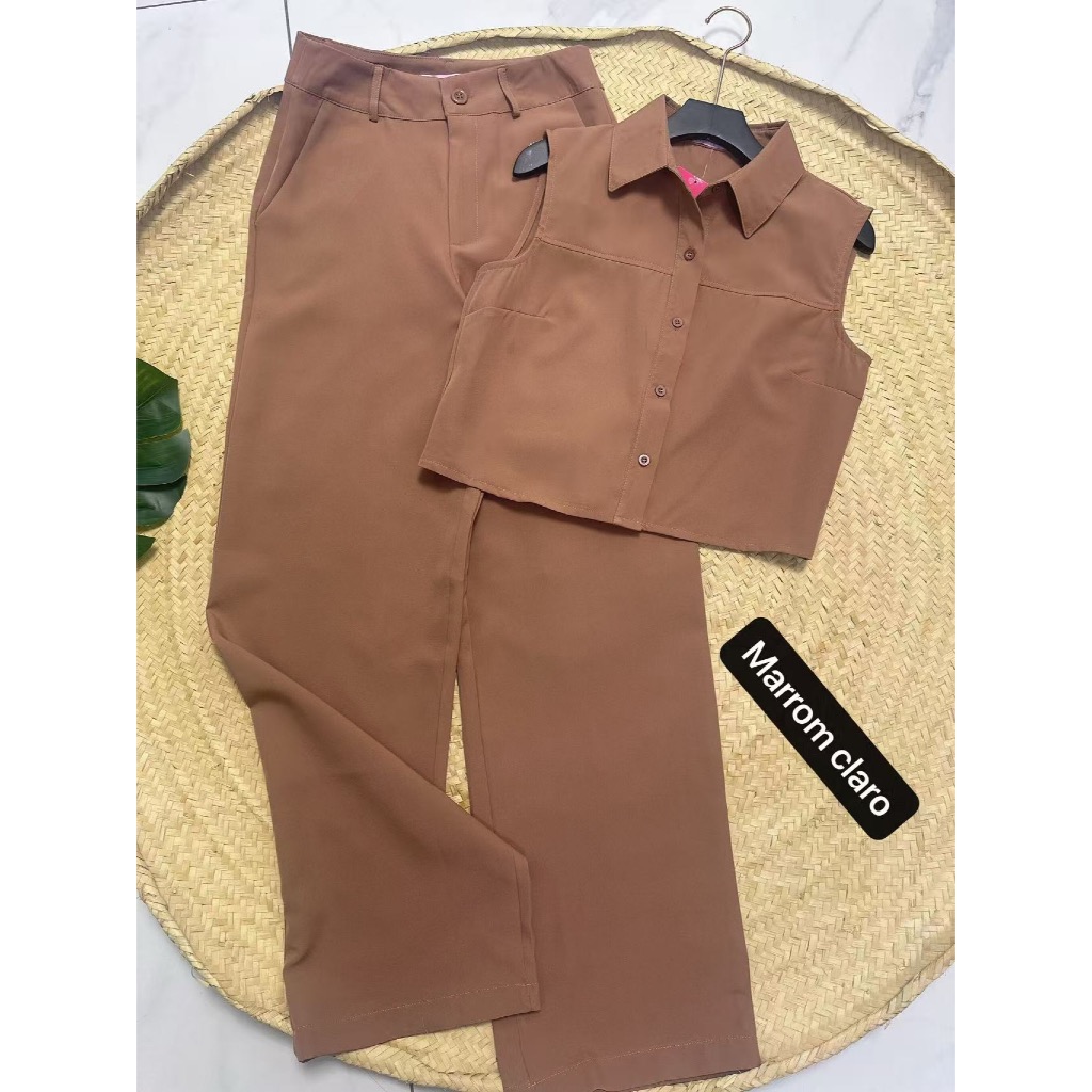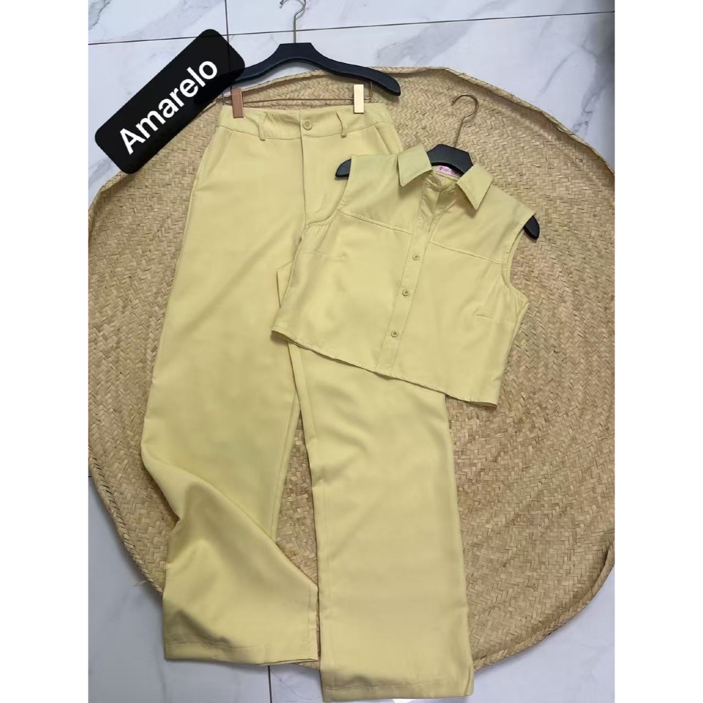 YAN FASHION Conjunto Alfaiataria Feminino Clássico Colete sem Mangas + Calça de Cintura Alta
