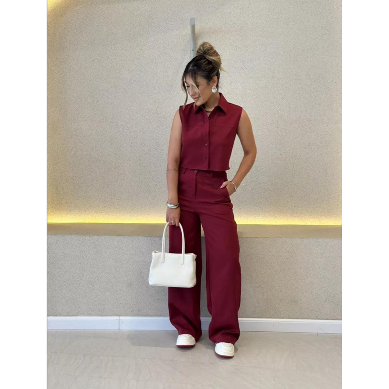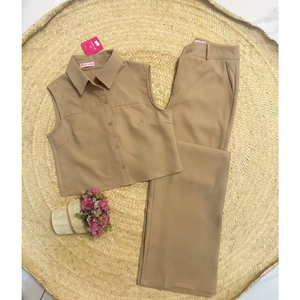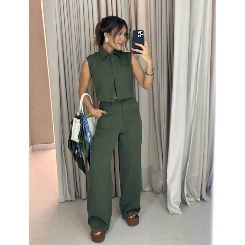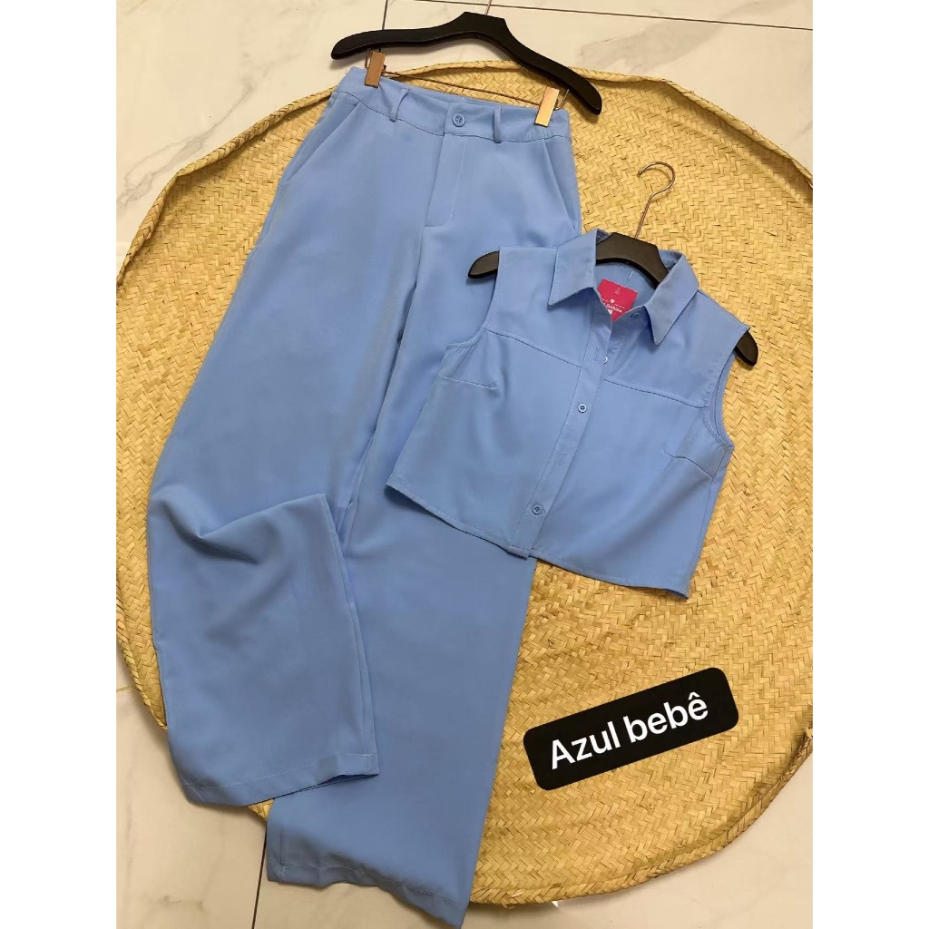 YAN FASHION Conjunto Alfaiataria Feminino Clássico Colete sem Mangas + Calça de Cintura Alta