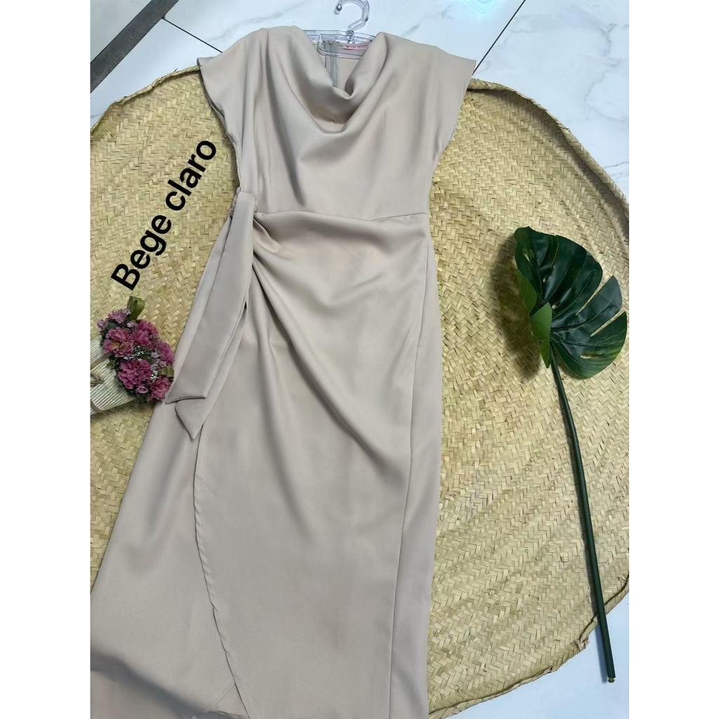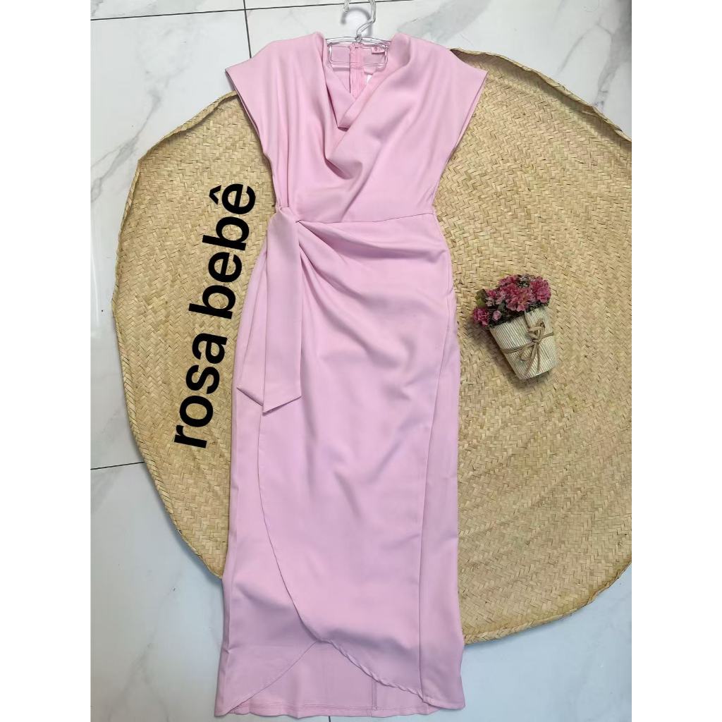Vestido Feminino Alfaiataria Midi Transpassado com Faixa na Cintura PMG