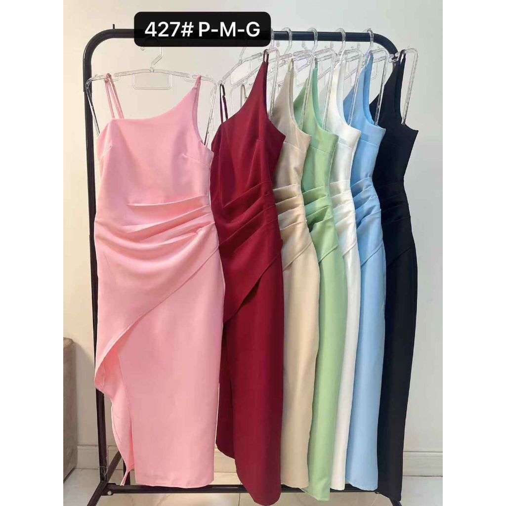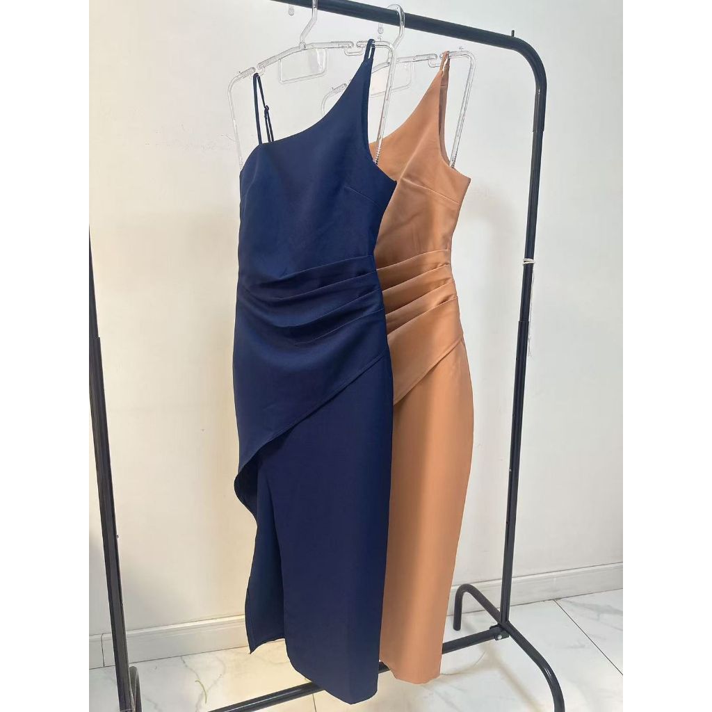 YAN FASHION | Vestido Alfaiataria Feminino Midi com fenda de Alta Costura – Alça Fina Elegante para Eventos Sofisticados