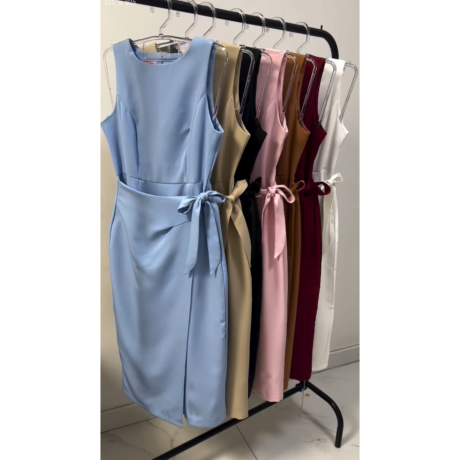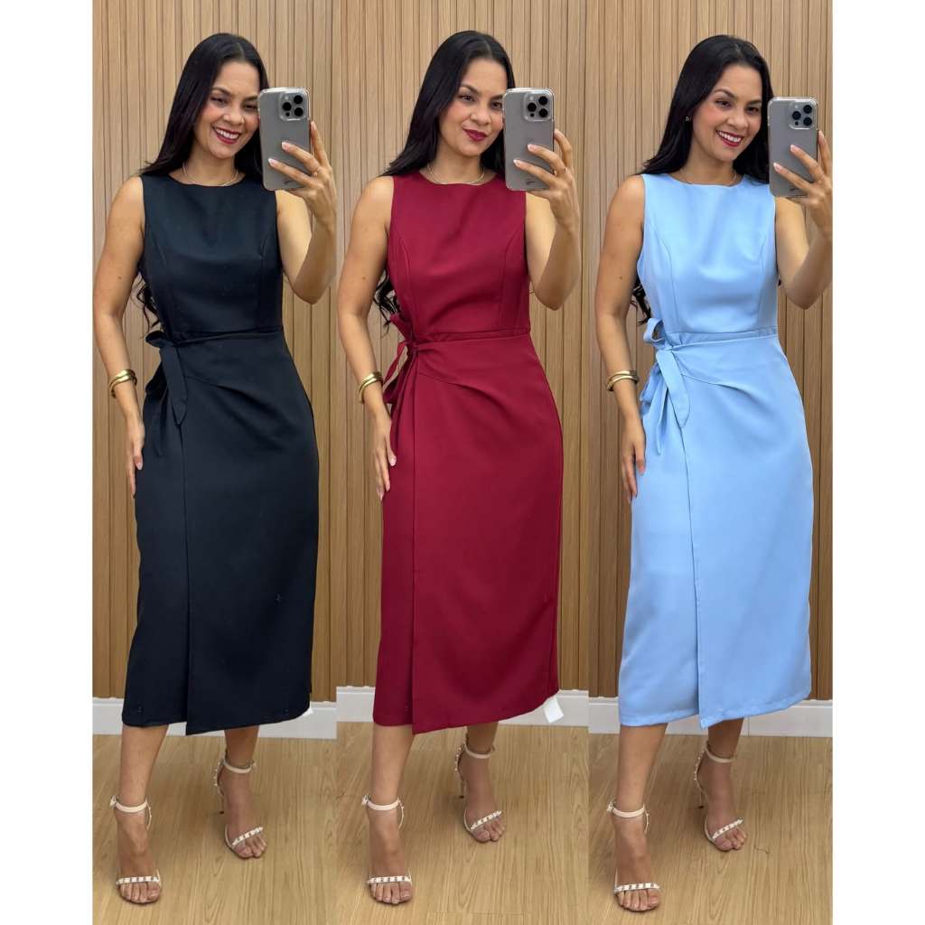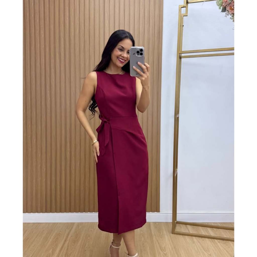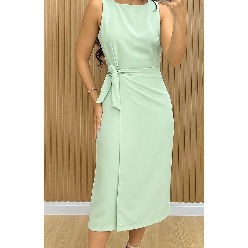 Vestido Feminino Alfaiataria Midi com Amarração Lateral Elegante | PMG