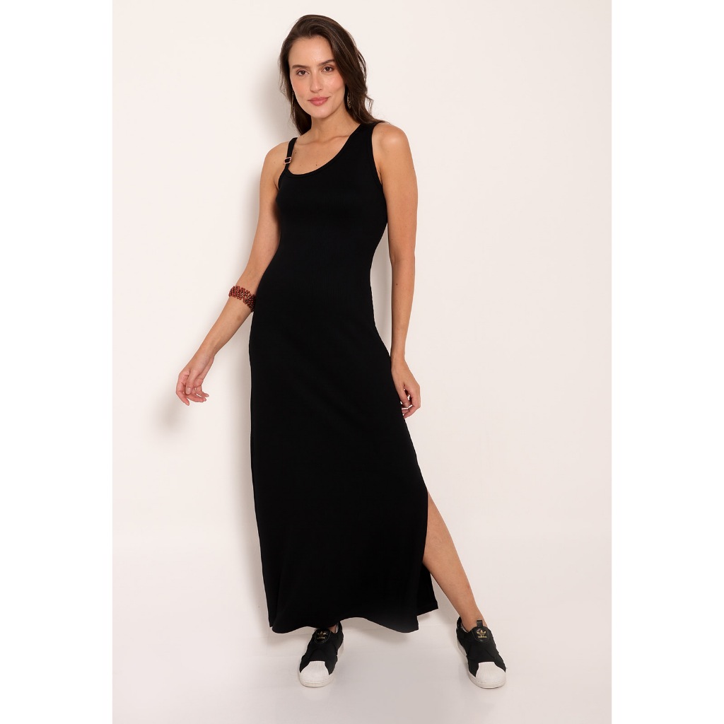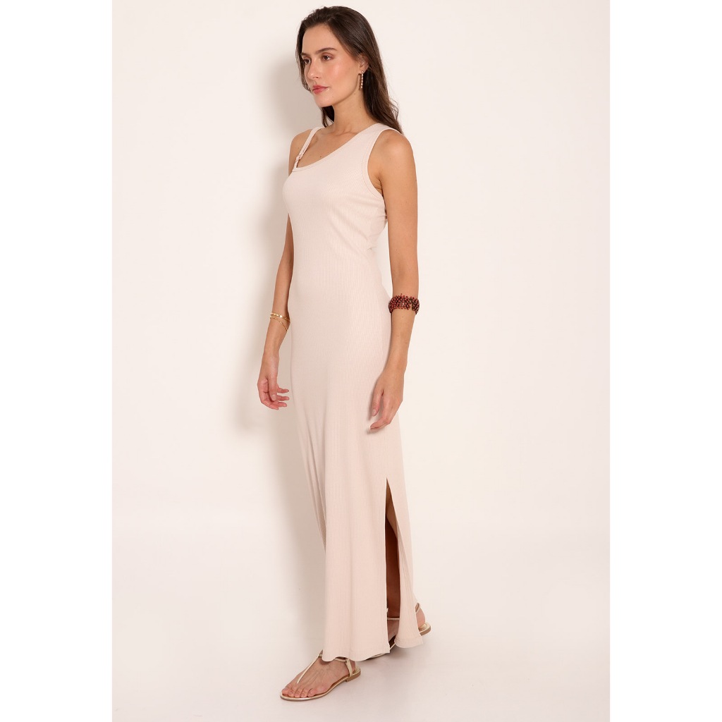 Vestido Feminino Longo Canelado Elegante Premium Tendência Fashion