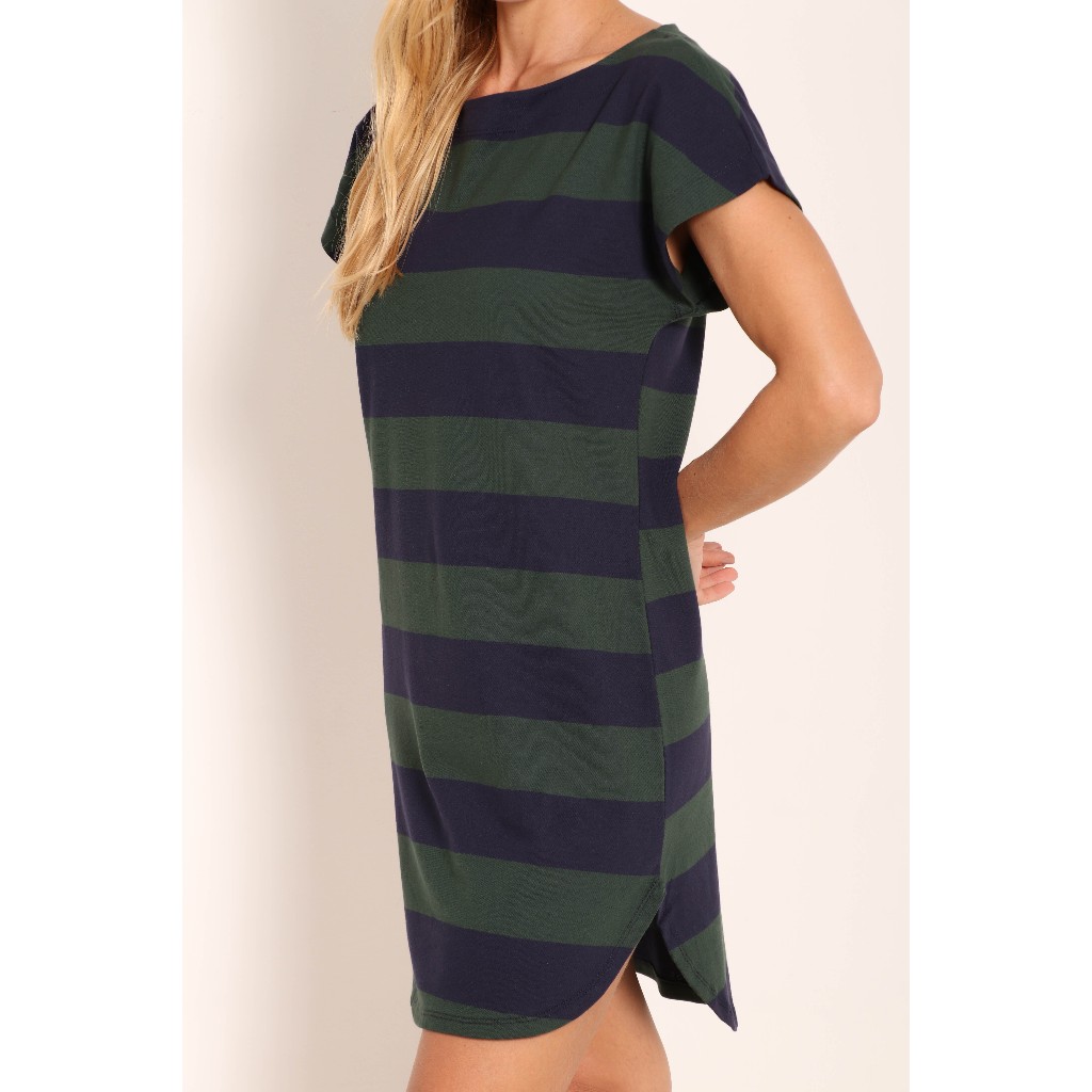 Vestido Feminino Curto Listrado Têndencia Blogueirinha Com Manga Curta Elegante Casual
