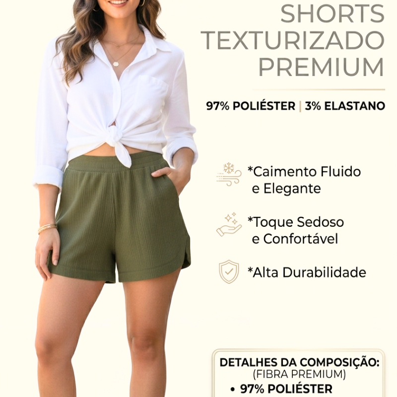 Shorts Feminino Soltinho Canelado Premium Inverno Elegante Escritório Casual
