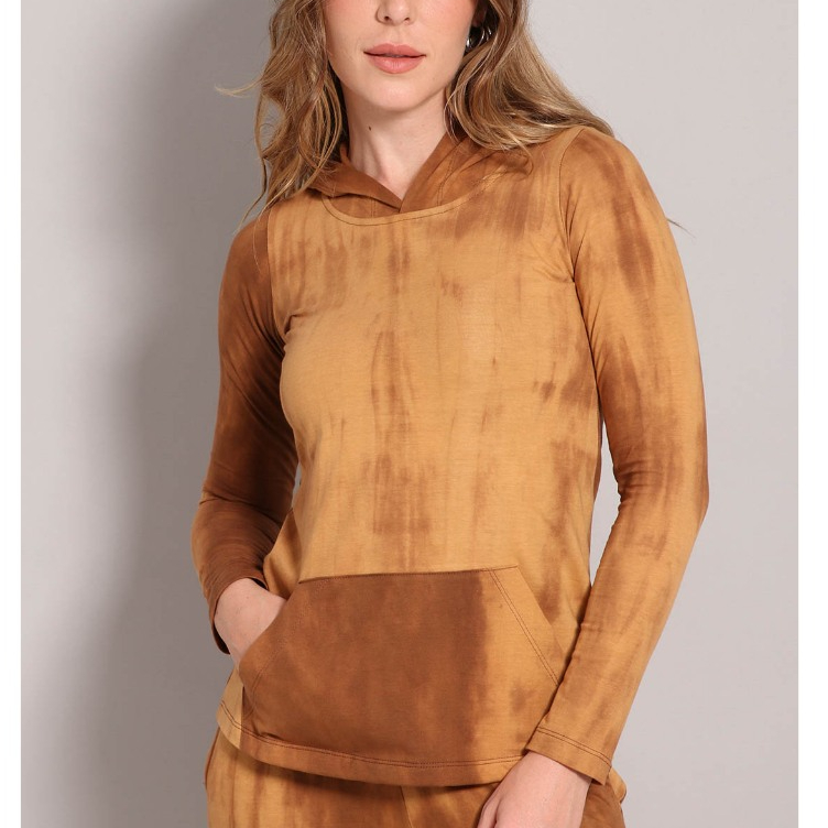 Blusa Feminina Com Bolso de Algodão Feminina Tye Dye Moda Elegante Premium Casual