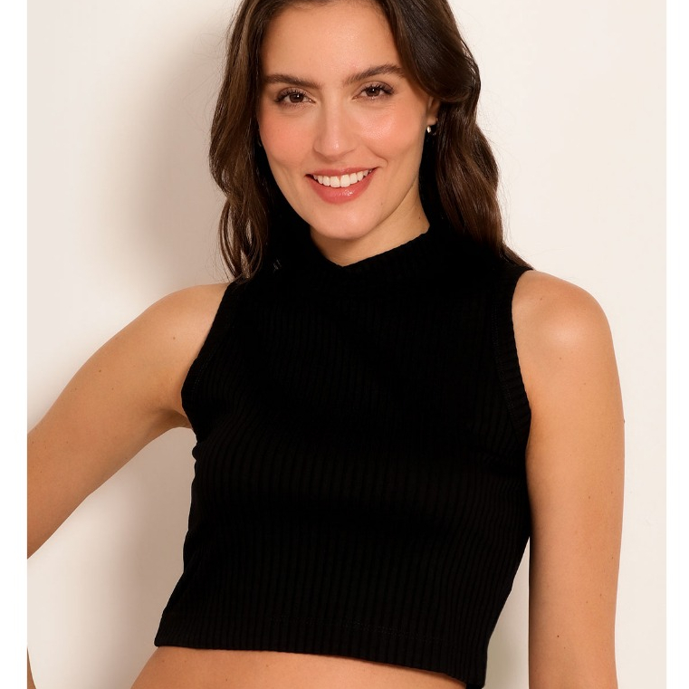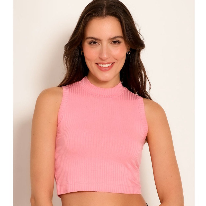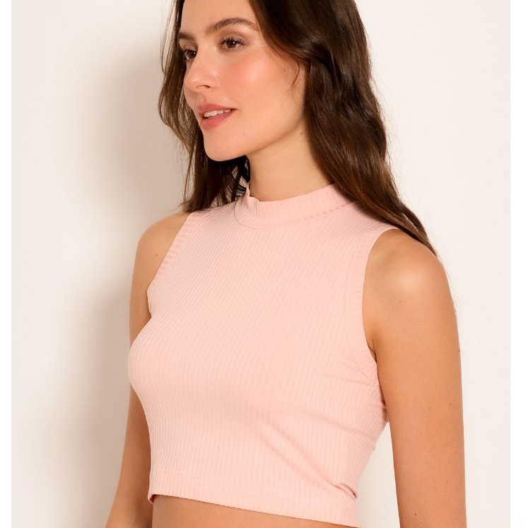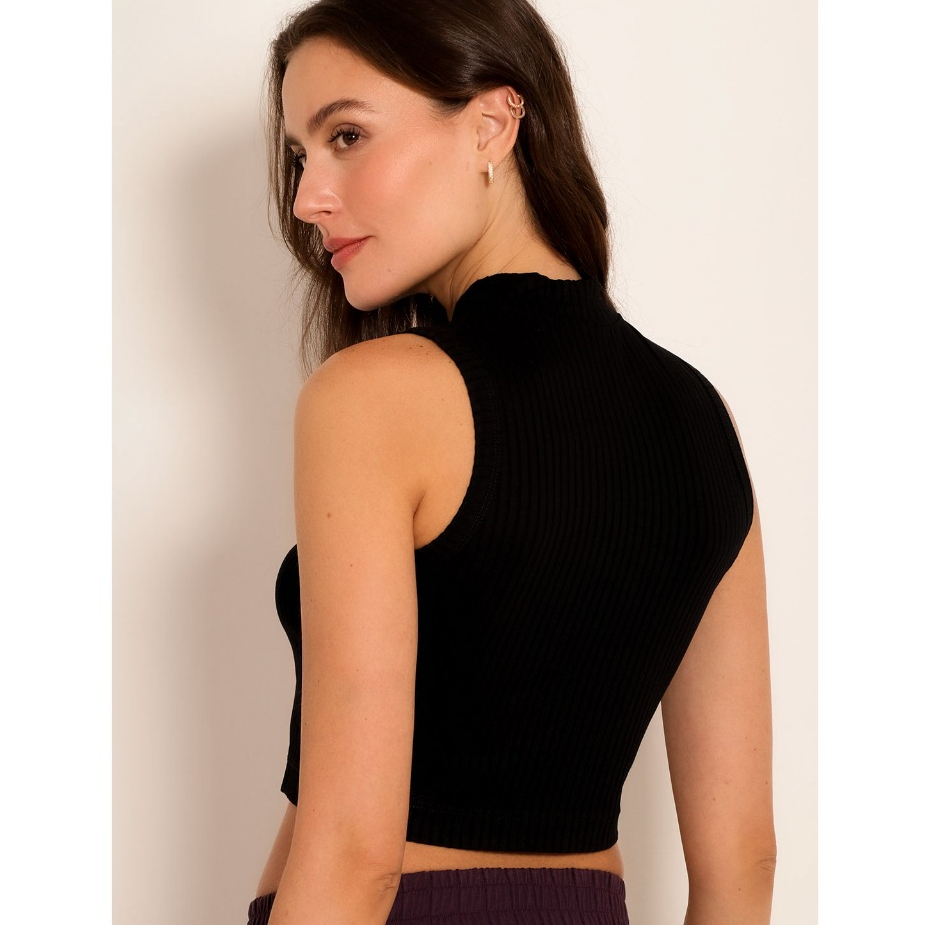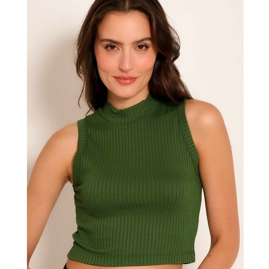 Cropped Feminino Gola Alta Regata Canelado Moda Elegante Fashion