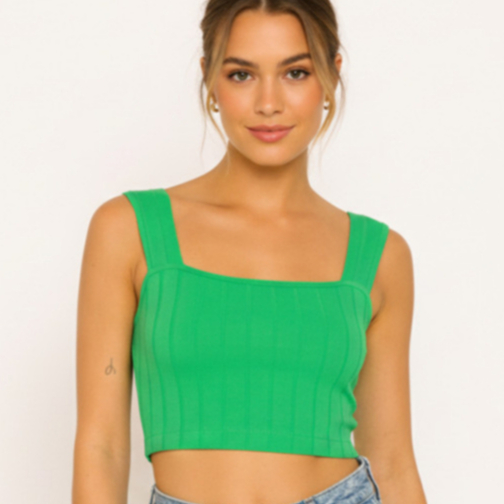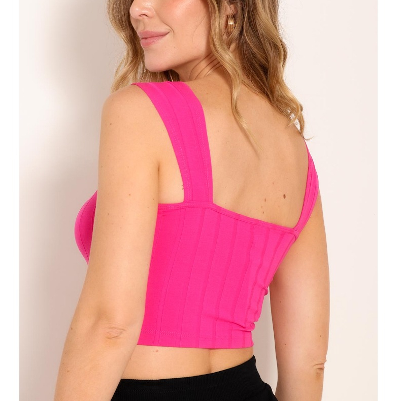 Cropped Regata Alça Larga Feminino Verão Fashion Canelado Básico