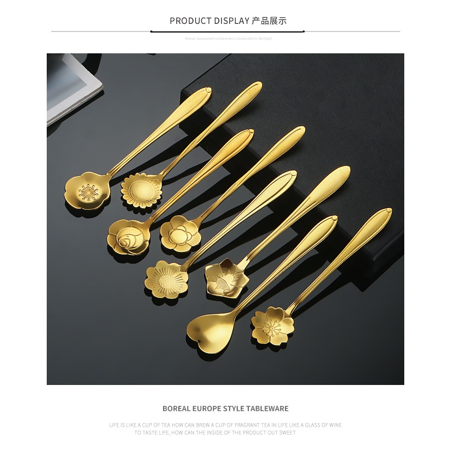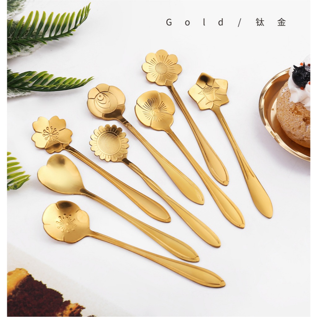 8 peça Colher de Cafédesign de flores Colheres de bolo de aço inoxidável