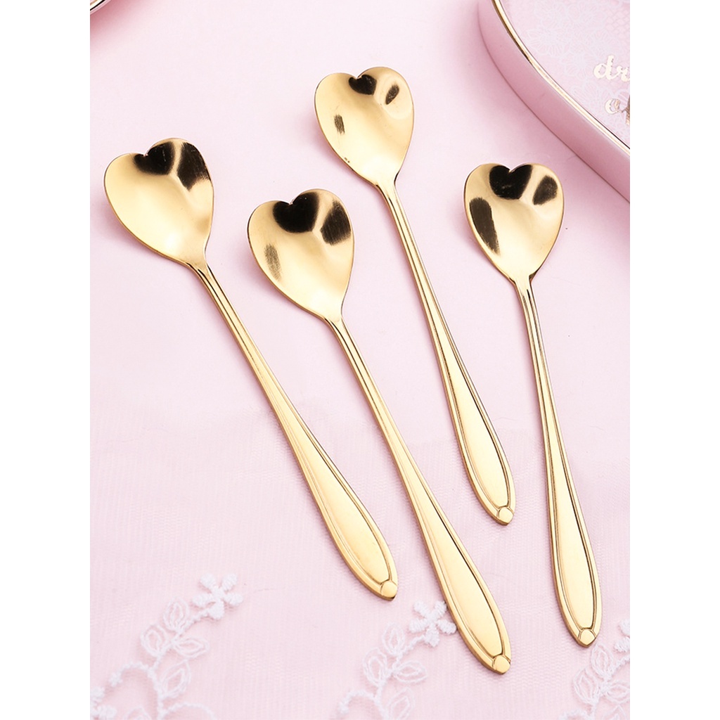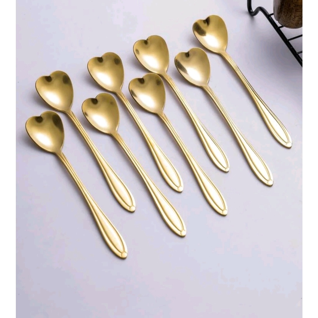 8 peça Colher de Café Design de Coração Aço Inoxidável Colher para Bolo