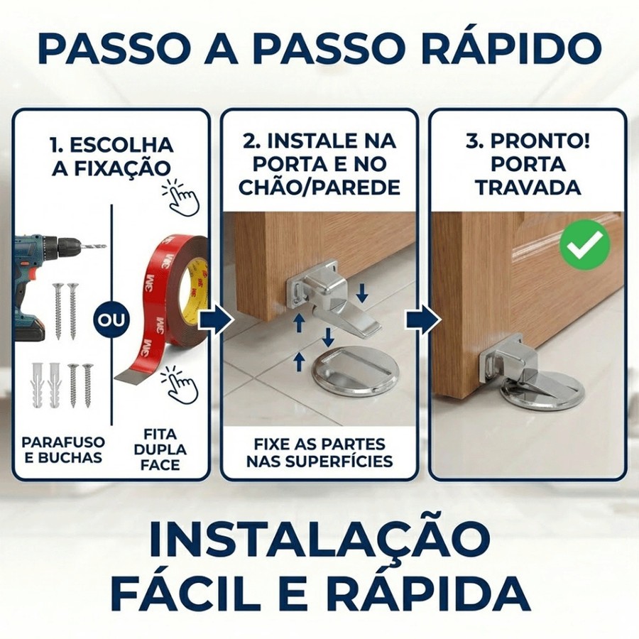 Prendedor Trava de Porta Magnético Slim Cromado Autoadesivo