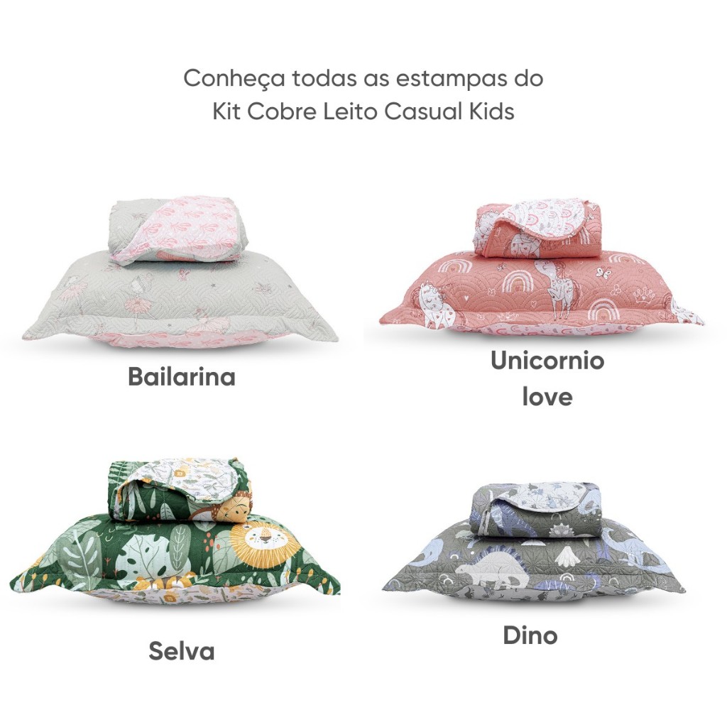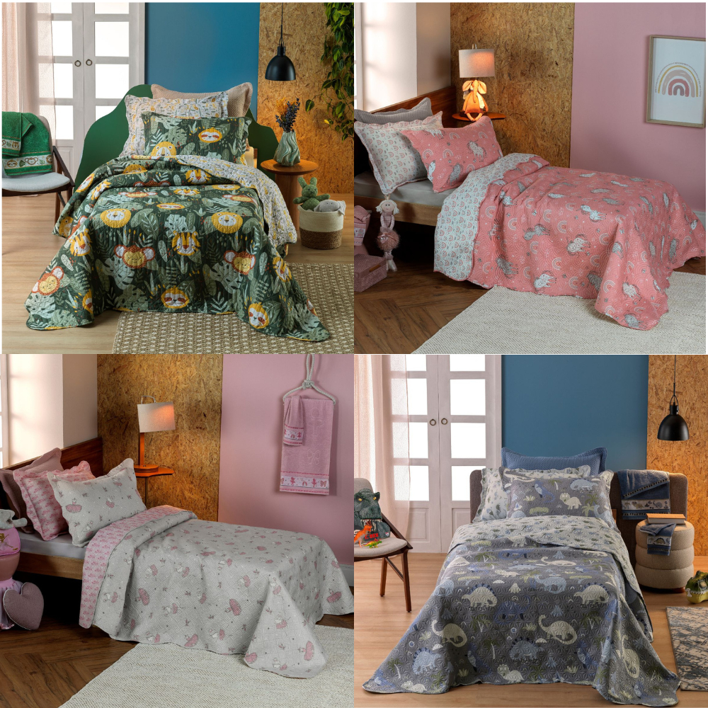 Kit Colcha Cobre Leito Infantil 2 Peças Solteiro Estampado c/ Porta Travesseiro Menino Menina Appel