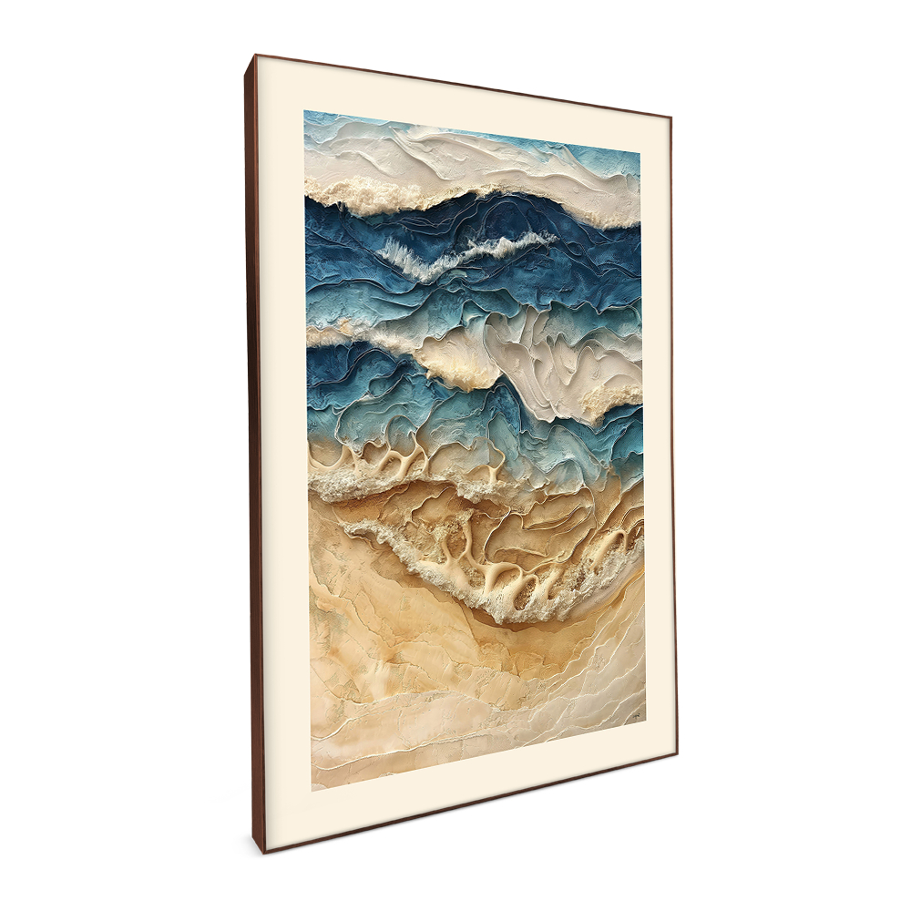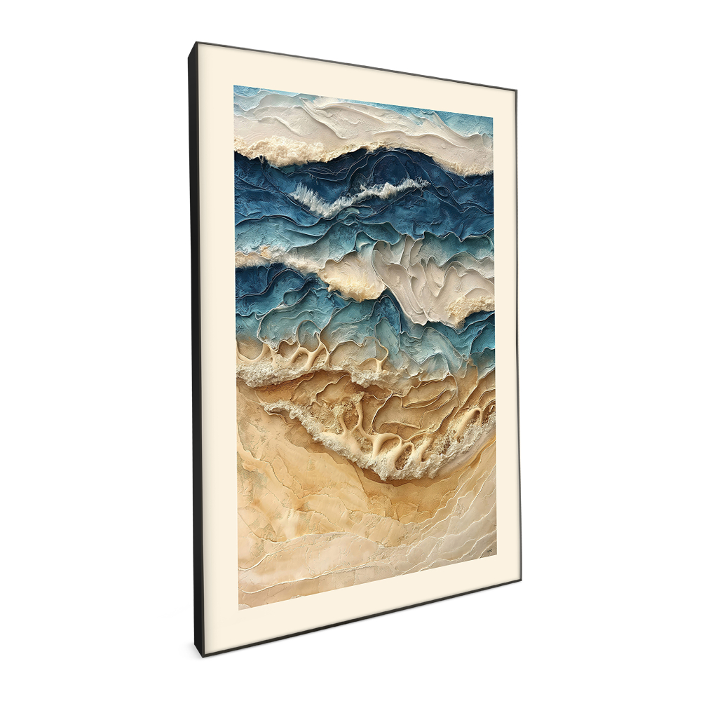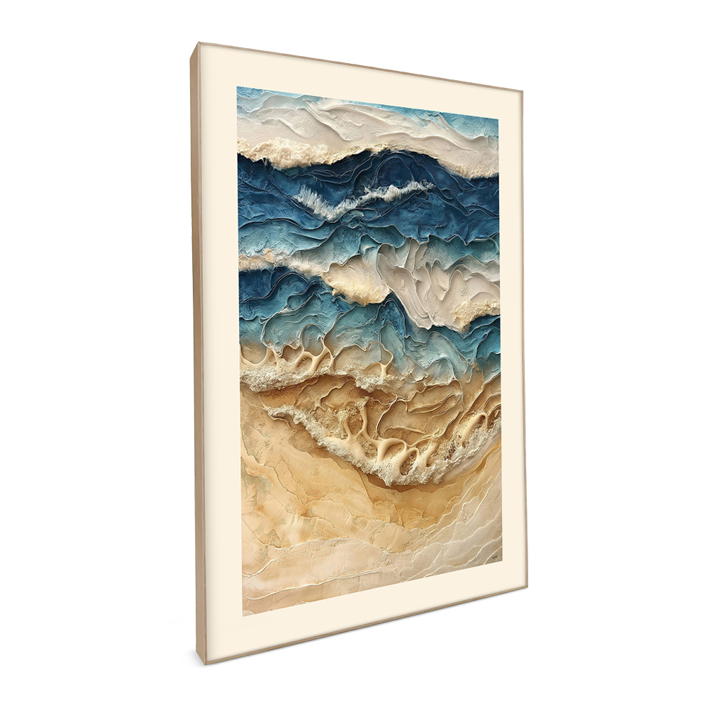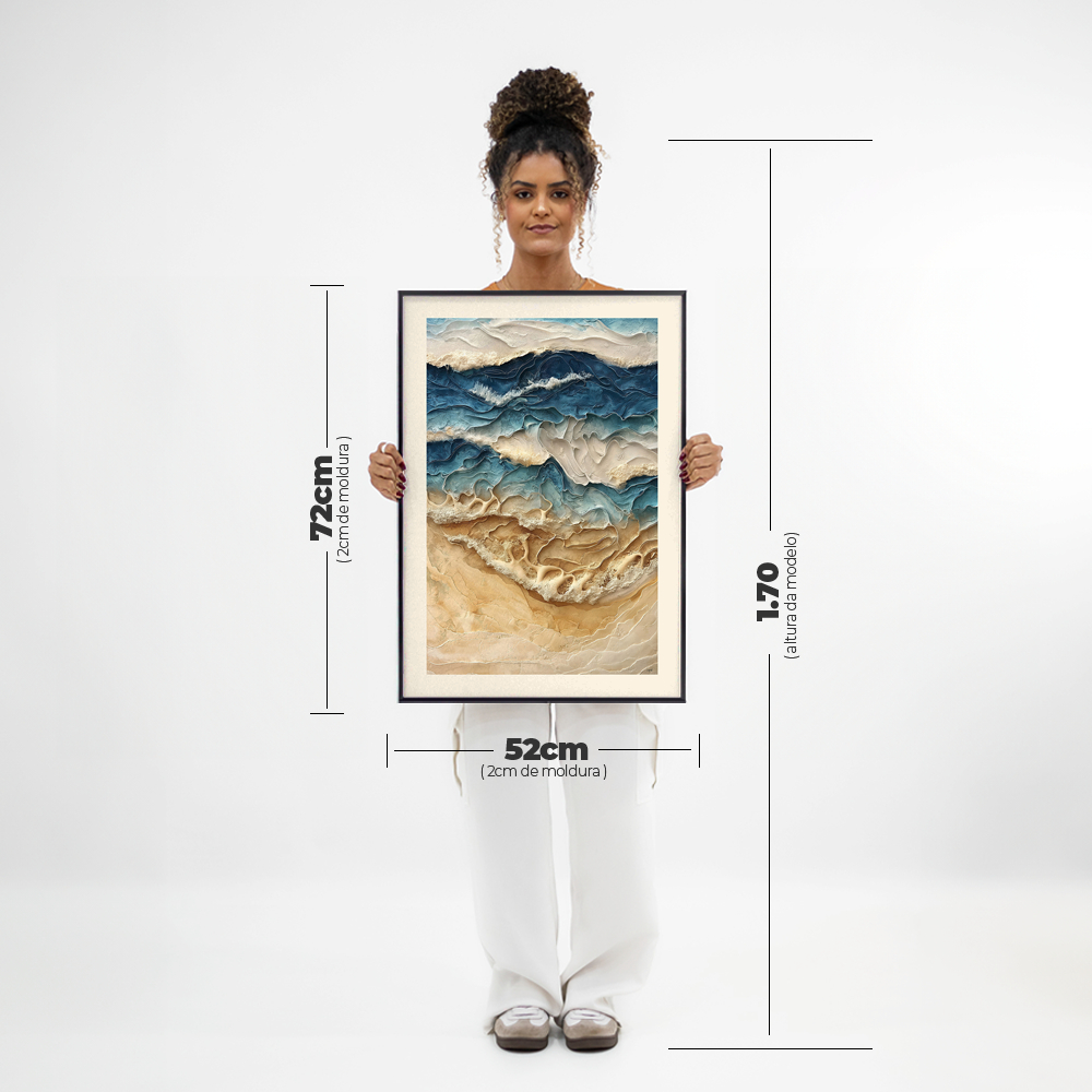 Quadro Decorativo Com VIDRO E Moldura Filete Grande Sala Quarto Abstrato Arte Estilo 3D Mar Agitado
