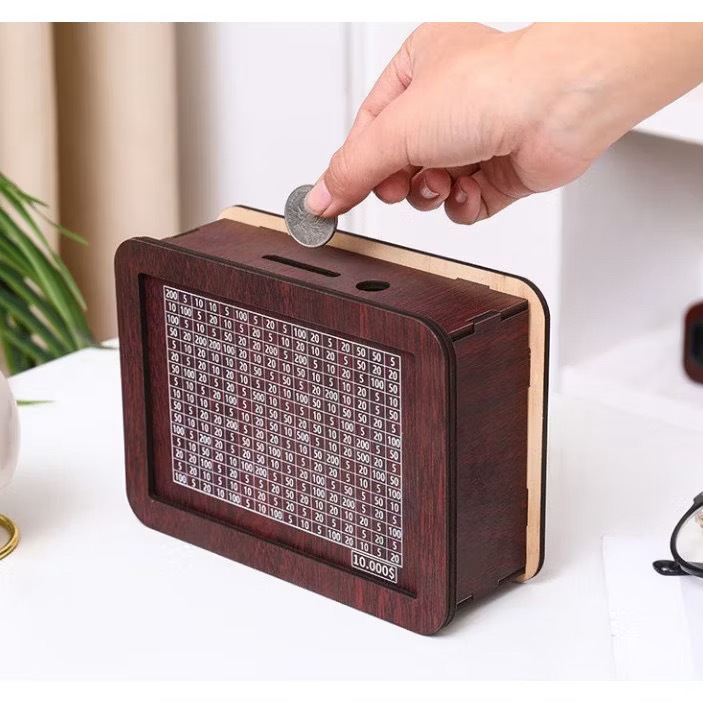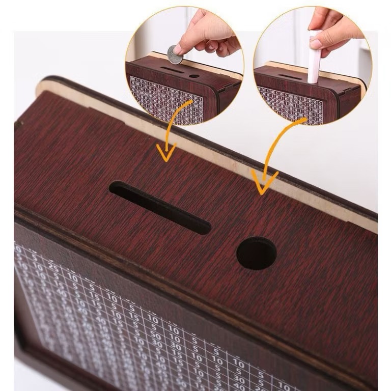 Caixa de dinheiro de madeira Challenge Safe R$1.000-MDF, usando método de poupança japonesa (caneta grátis)