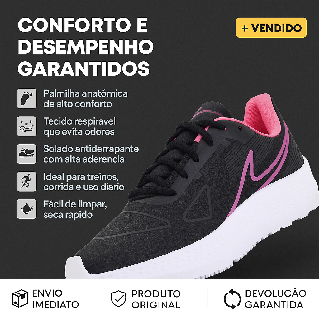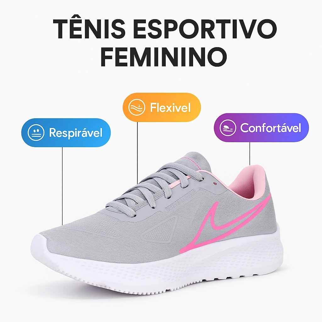 Tênis Feminino Esportivo Multifuncional – Leveza e Estilo para o Seu Dia a Dia Academia Treino