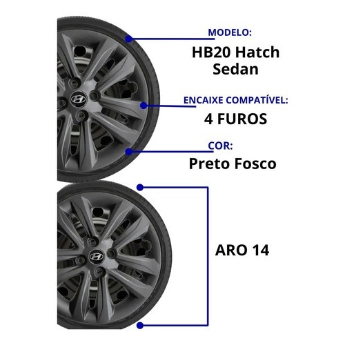 Jogo de Calota Preta para Hb20 Roda Aro 14 Hatch Sedan